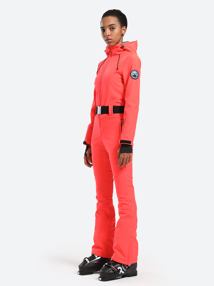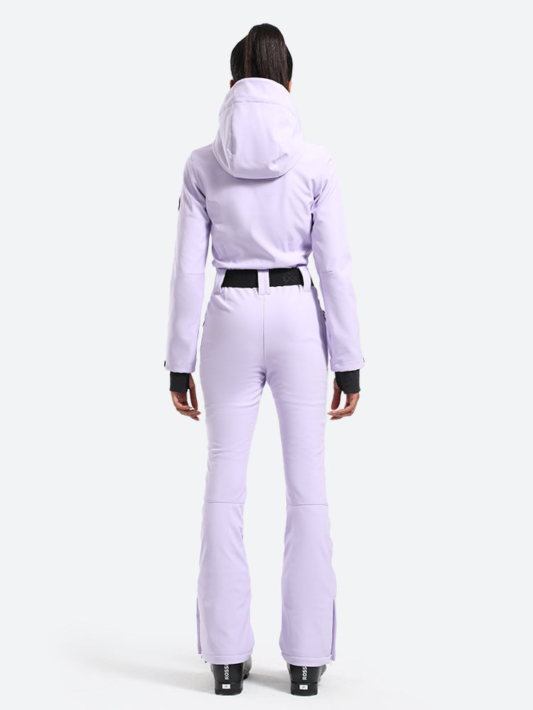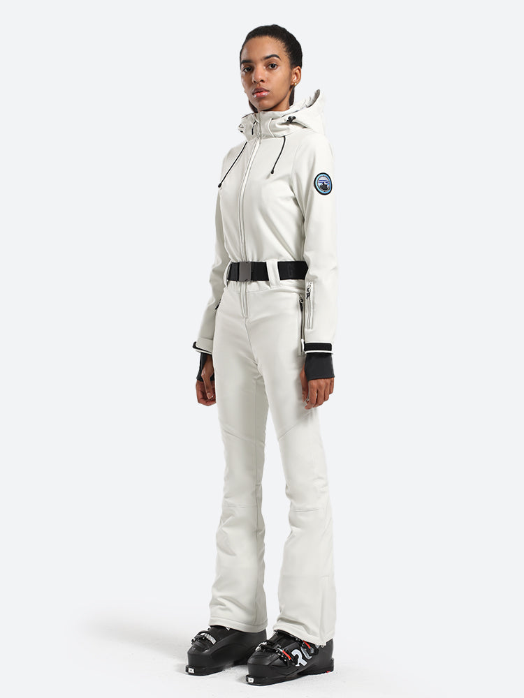 The GSou Snow one-piece ski suit delivers unparalleled coziness and ease of movement, enhanced by practical features like a removable hood, two thigh pockets, a pass pocket on the cuff, and an adjustable waistband.