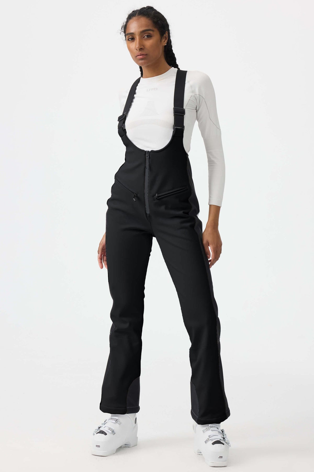 Women's Black Slim Fit Fully-Sealed Ski Bibs