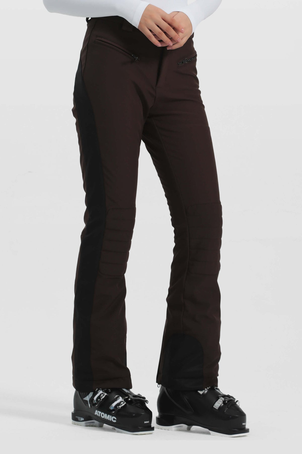 Women's Brown Reinforced Knee Scuff Guard Ski Pants