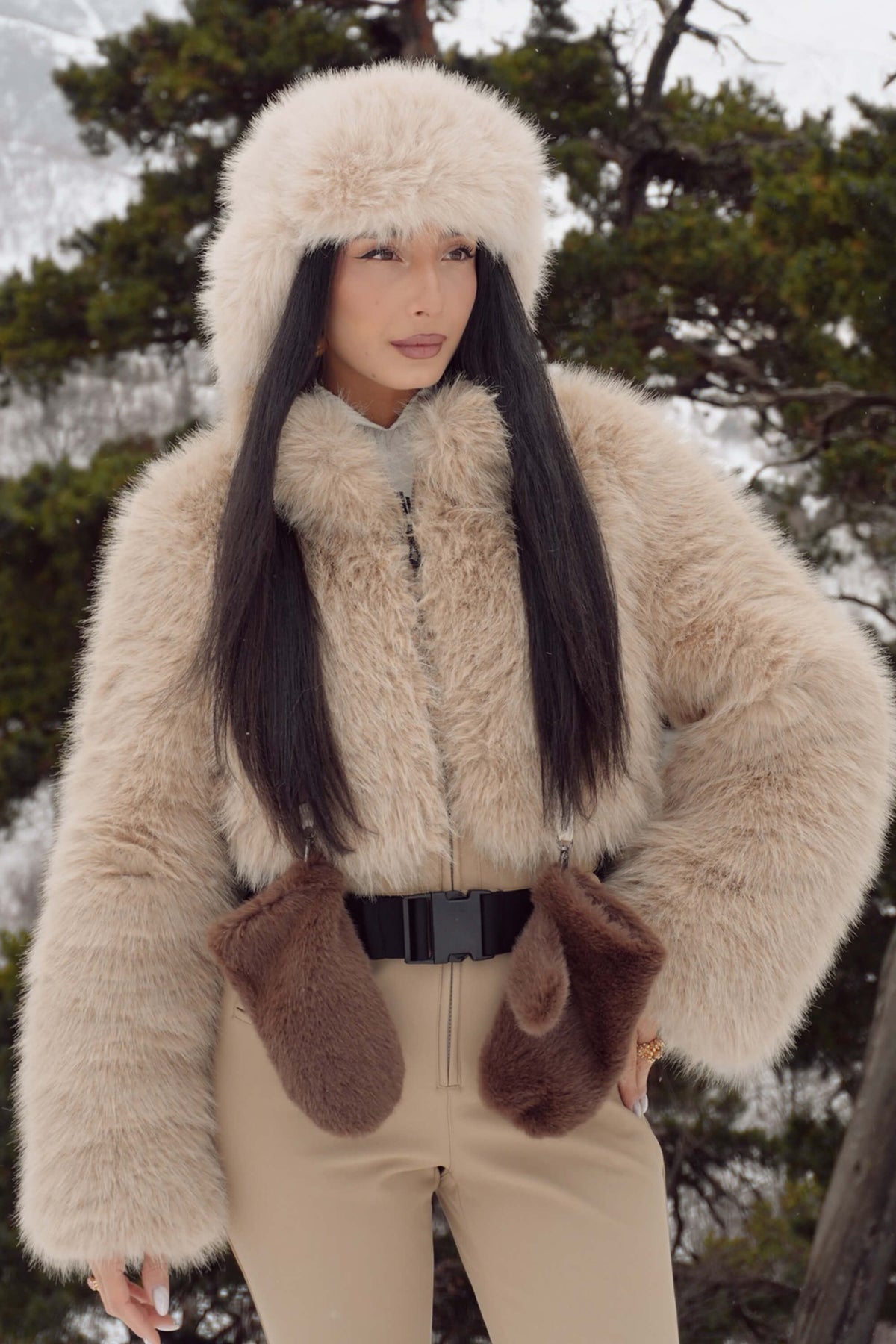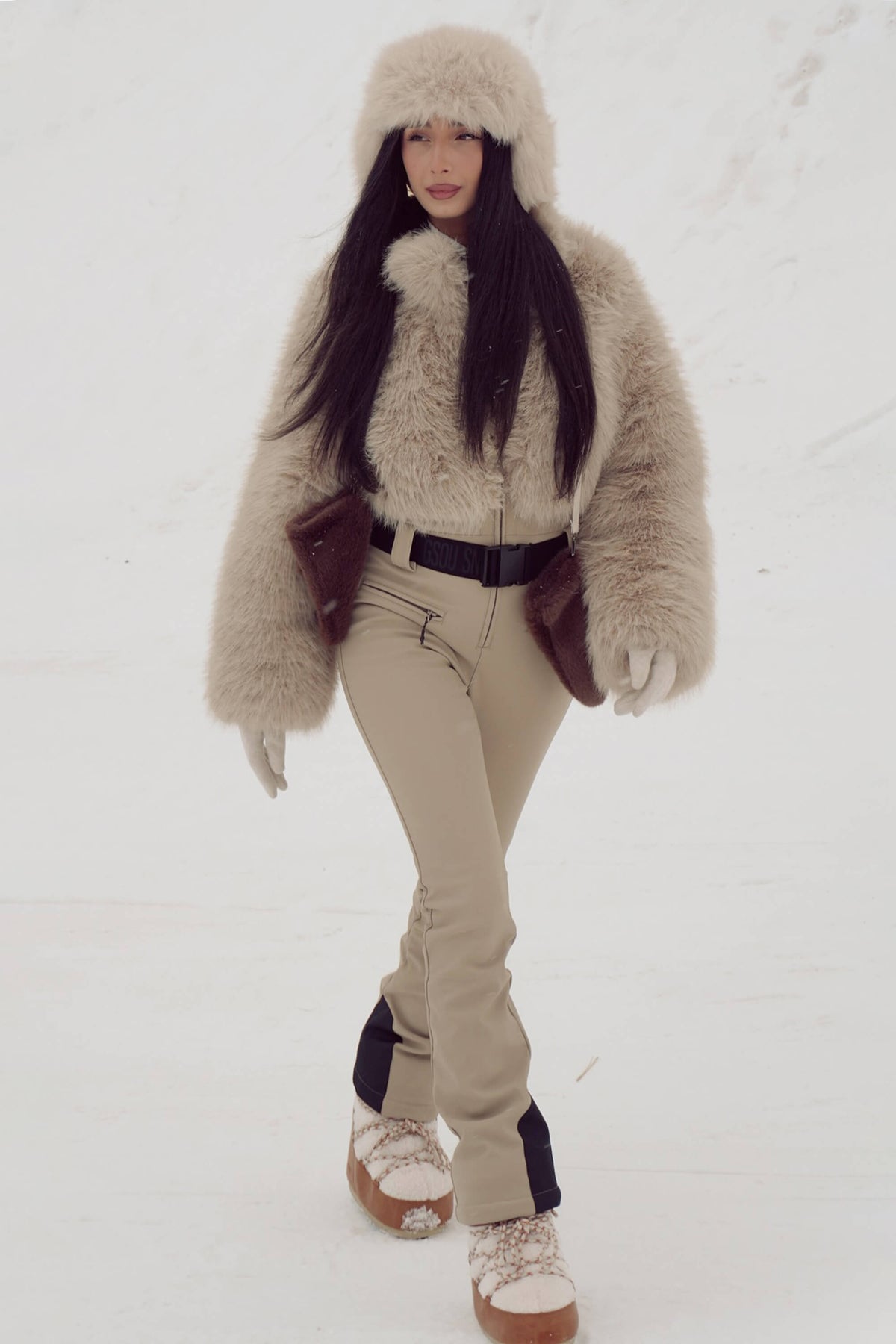 Elevate your ski style with this 20K waterproof slim-fit stretch ski suit, designed with a faux fur jacket top and flared pant legs for a chic silhouette. Featuring 15K breathability, 4-way stretch, and durable YKK zippers, it blends high-performance protection with fashion-forward design—perfect for snow sports and alpine skiing.
