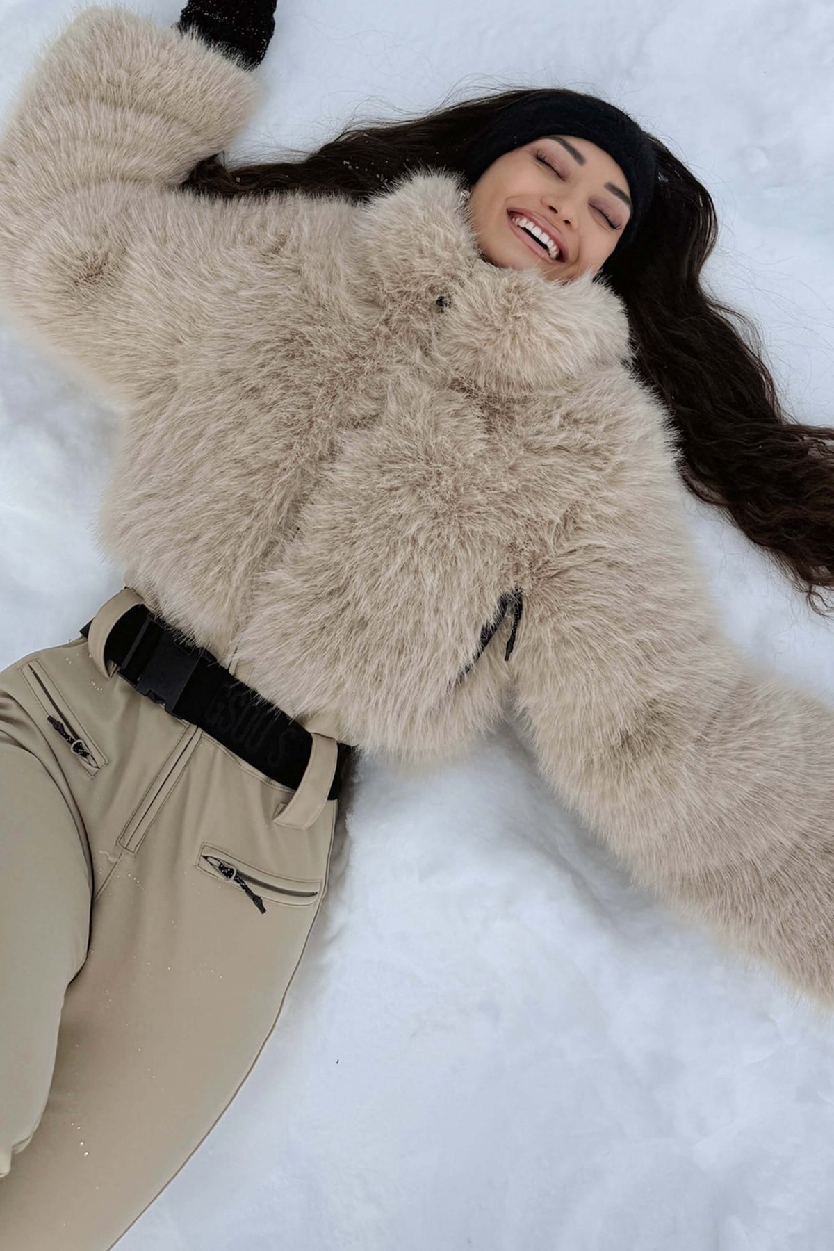 Women's Faux Fox Fur Slim-Fit Stretch One-Piece Ski Suit