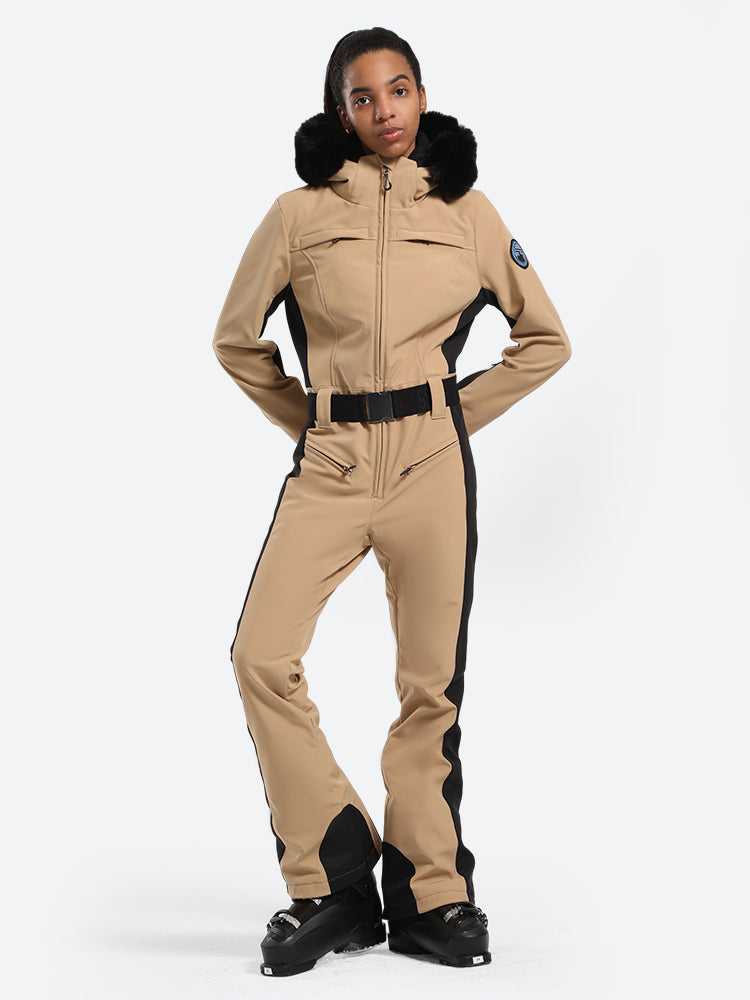 Women's Minimalist Faux Fur Neon Yellow Down One-piece Ski Suits
