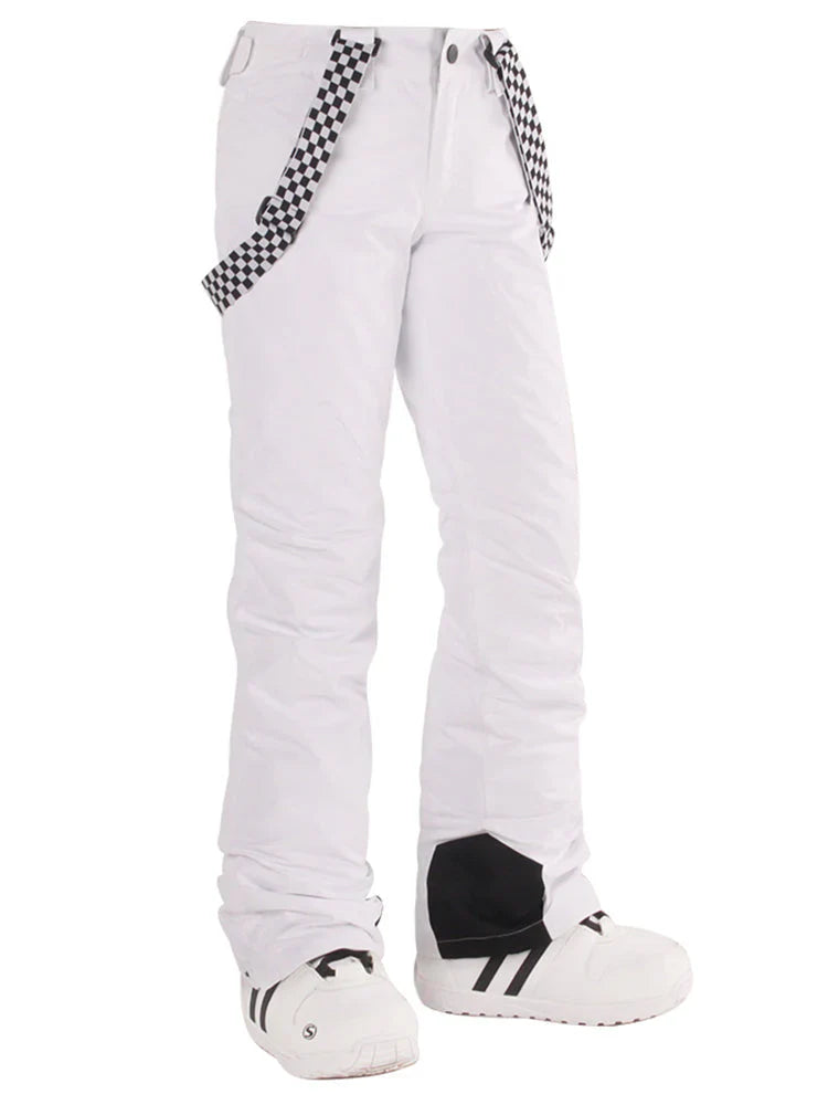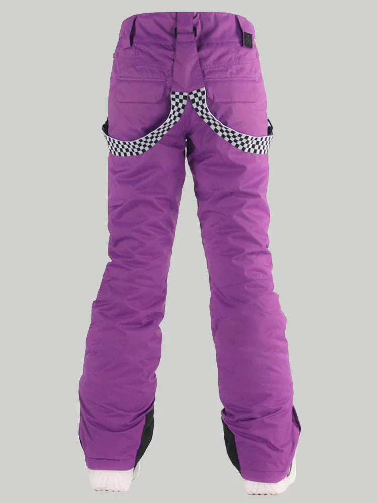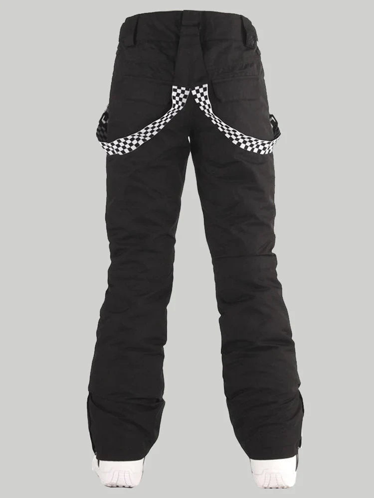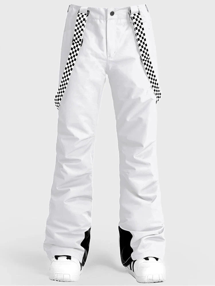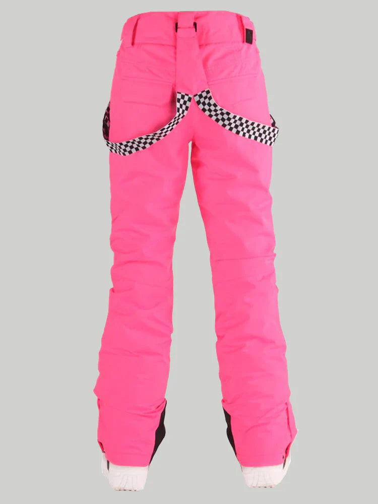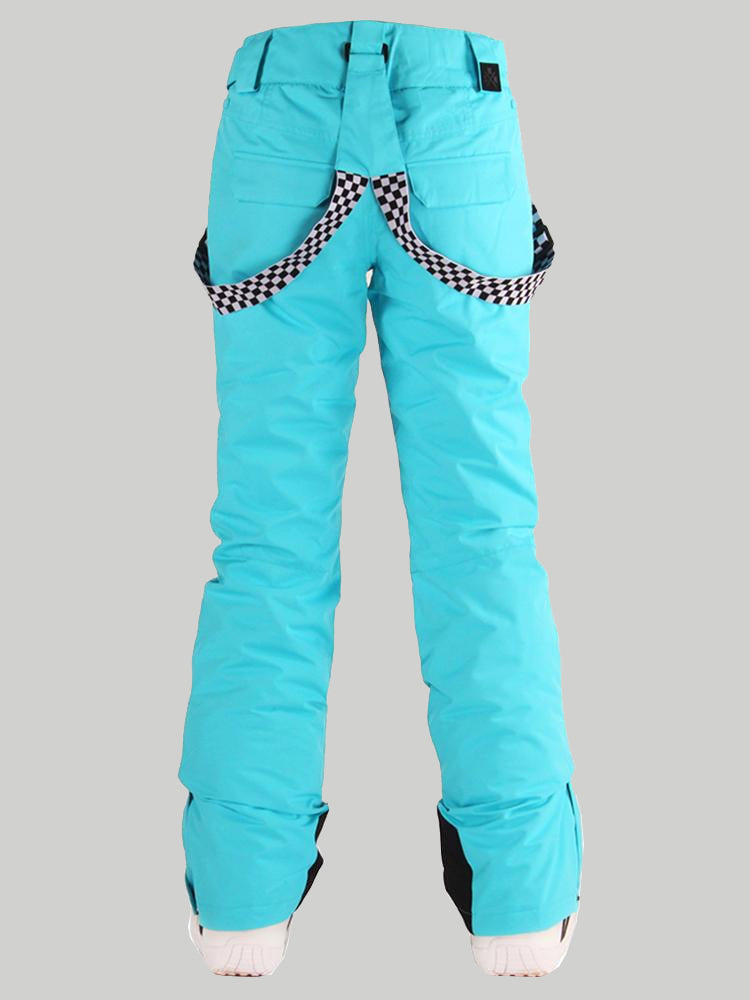 Women's Neon Cyan Flare Snow Pants with Checkered Suspenders