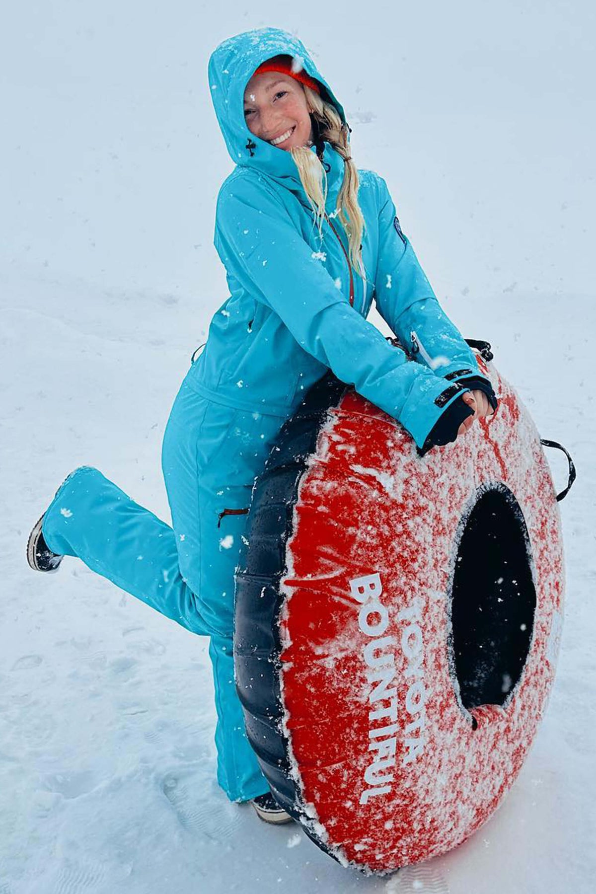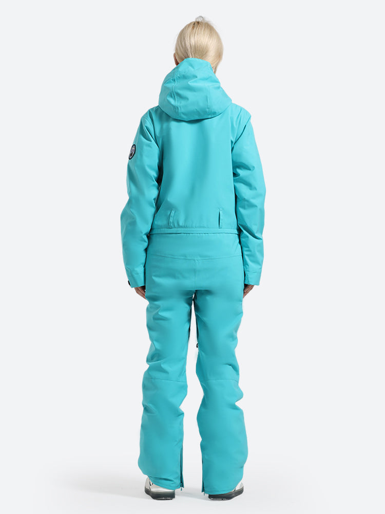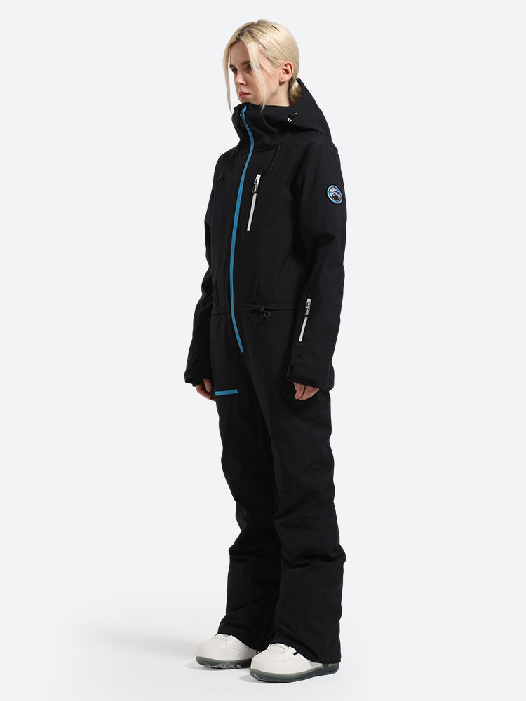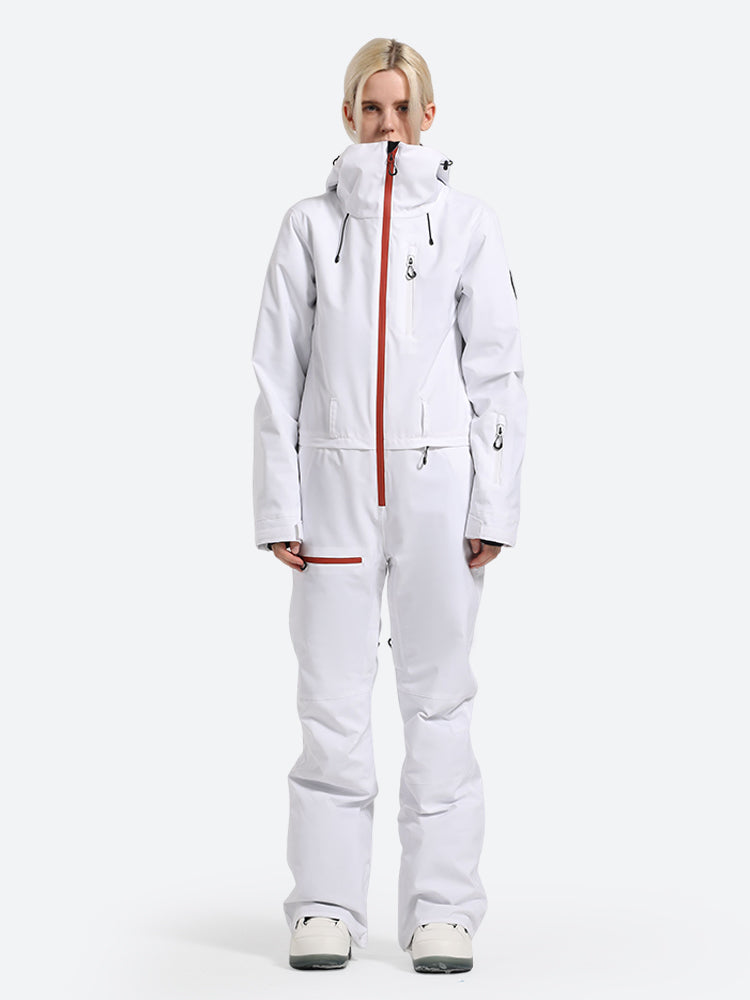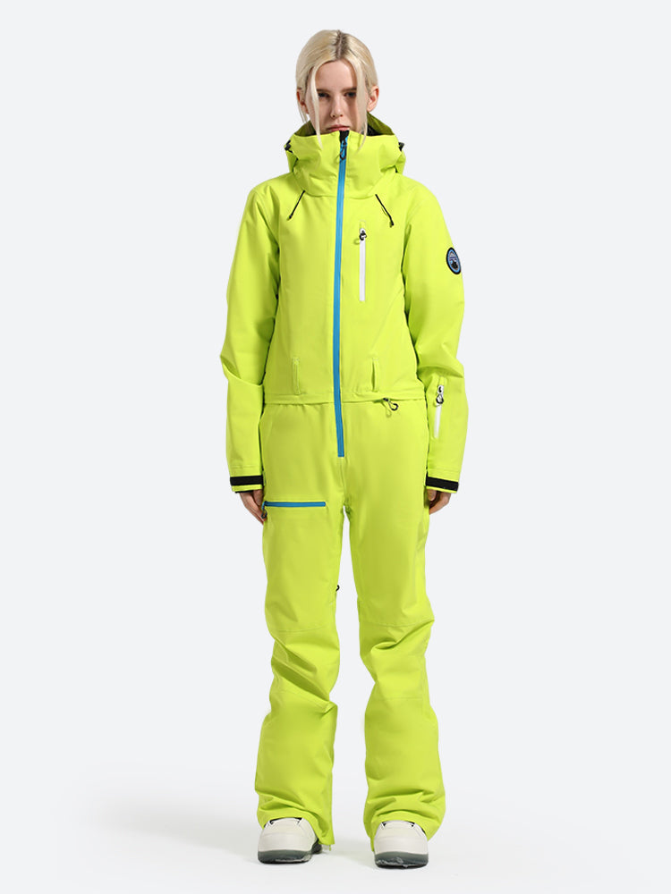This GSou Snow one-piece ski suit is specifically designed for skiing, crafted with high-quality waterproof and breathable fabrics to withstand cold, snow, and moisture. The bright colors and unique cut create a vibrant look, adding a cool, bold personality.