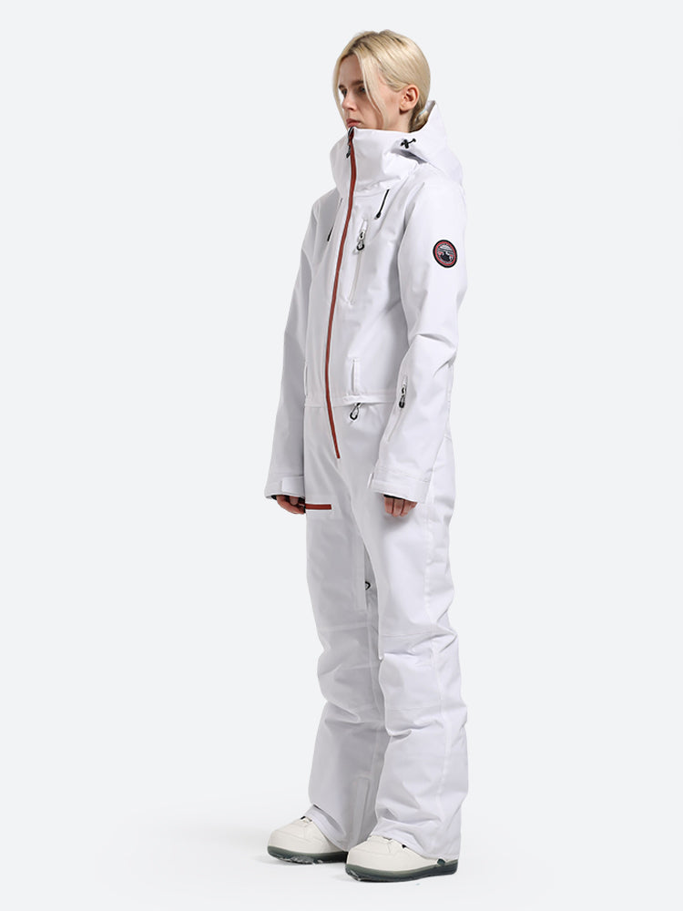 Women's Neon Red Waterproof-breathable One-Piece Ski Suits