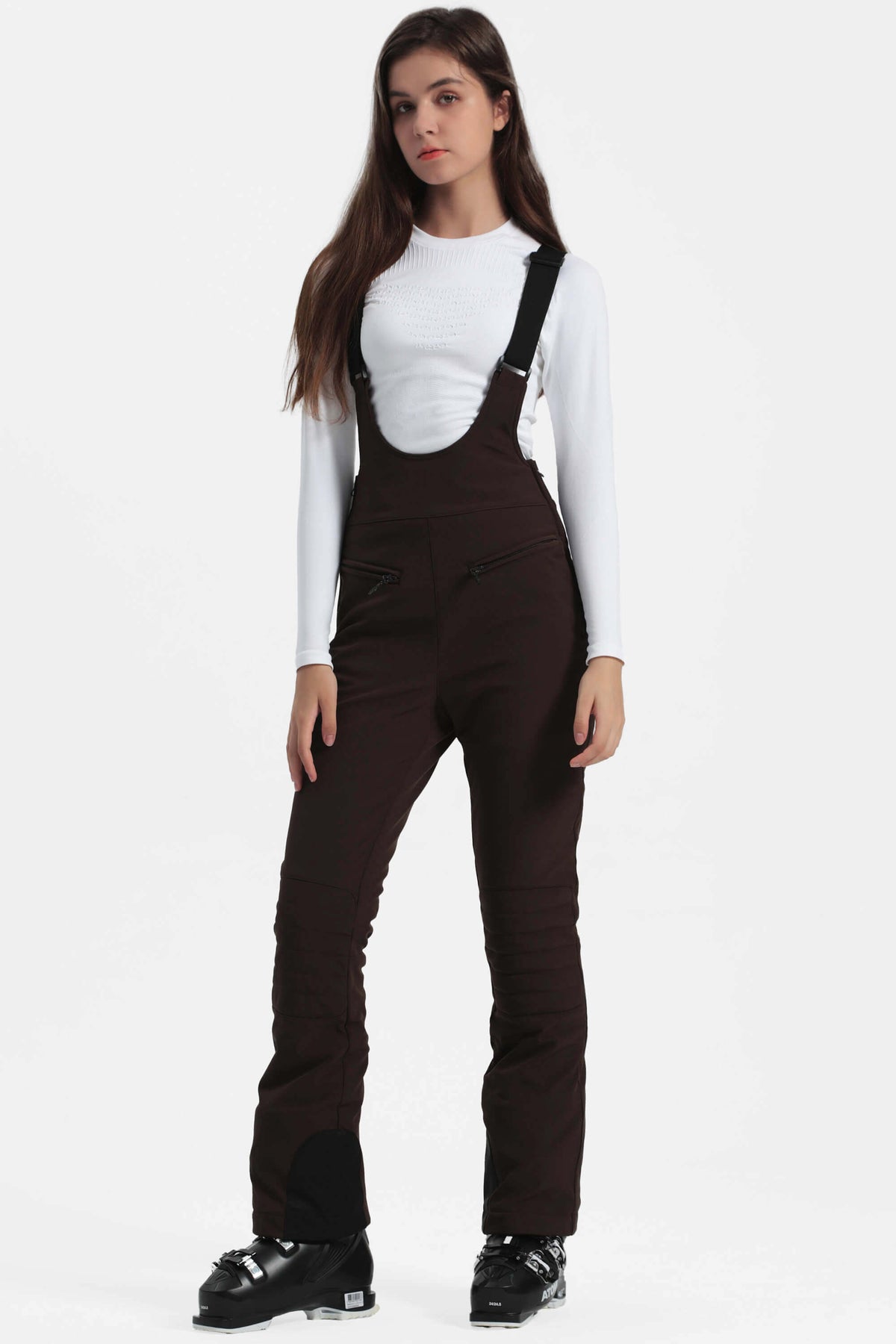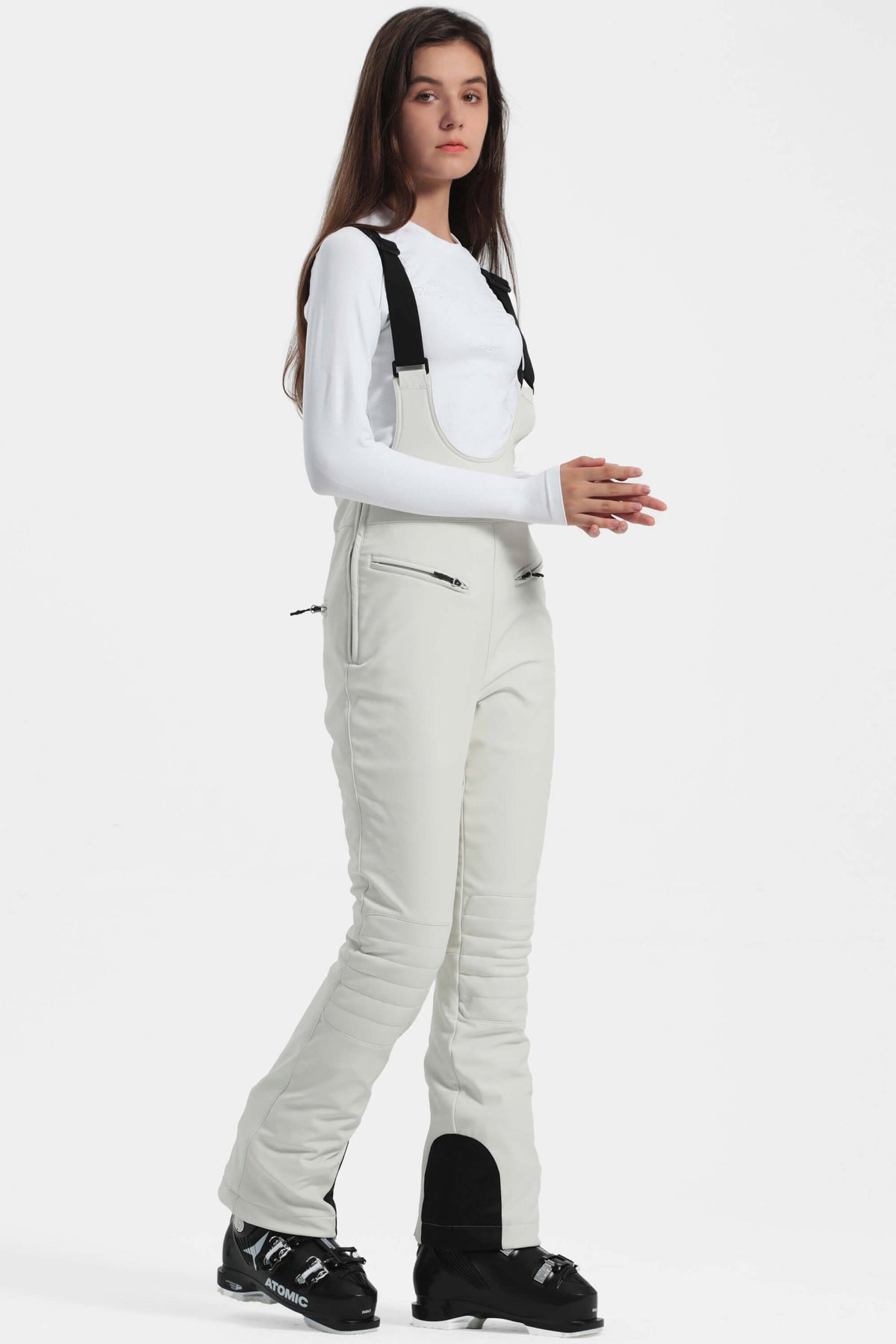 Women's Off White Slim-Fit Stretch Fleece-Lined Ski Bibs
