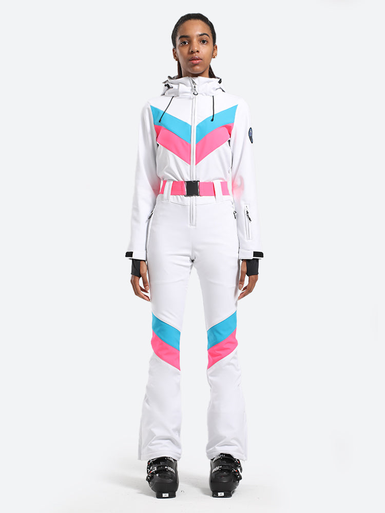 This color-block One-Piece ski suit features a slim fit and comes with waterproofing. The removable hood allows for adjustments to the weather and your personal preferences. The color-blocking design makes you stand out in the snow.