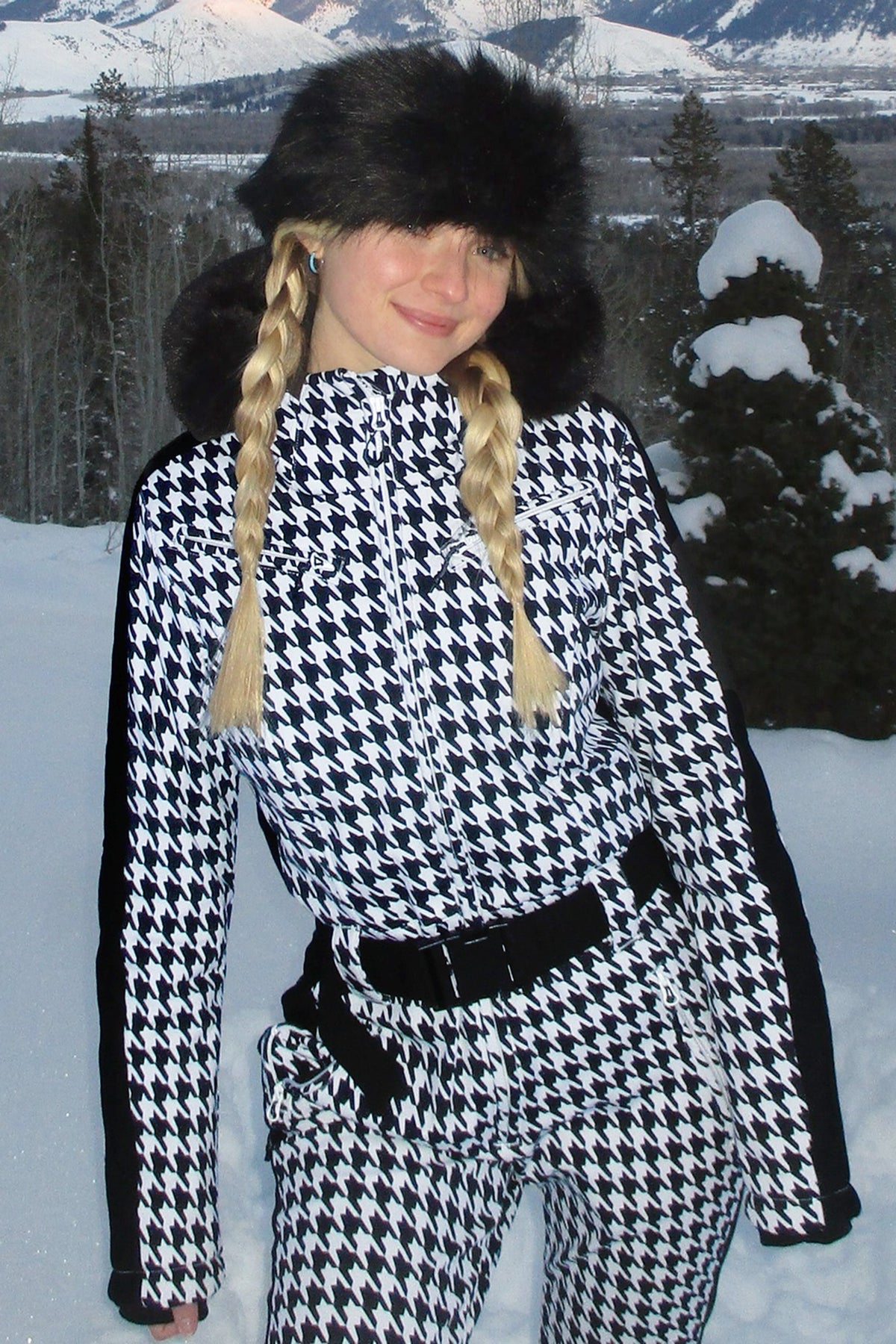 The GSou Snow one-piece ski suit, designed for a slim fit, boasts a removable faux fur hood, providing a range of styling possibilities. Made from stretchy fabric, it allows for unrestricted movement while skiing. A soft chin guard, interior pockets, cuff pockets, and waterproof zippers make this ski suit an excellent choice.