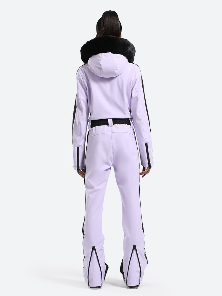 Women's Slim-Fit Stretch Faux Fur Lavender One-Piece Ski Suit