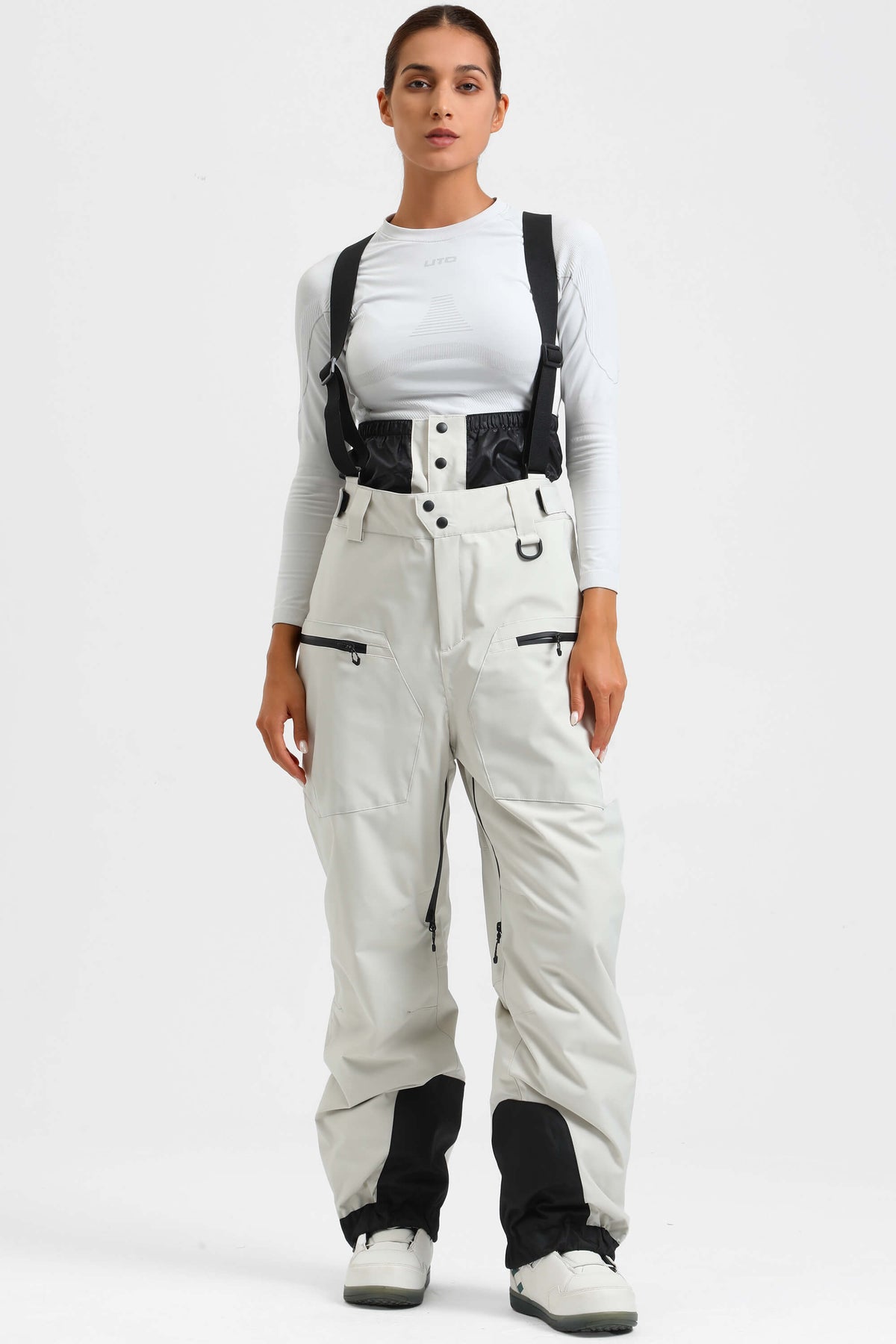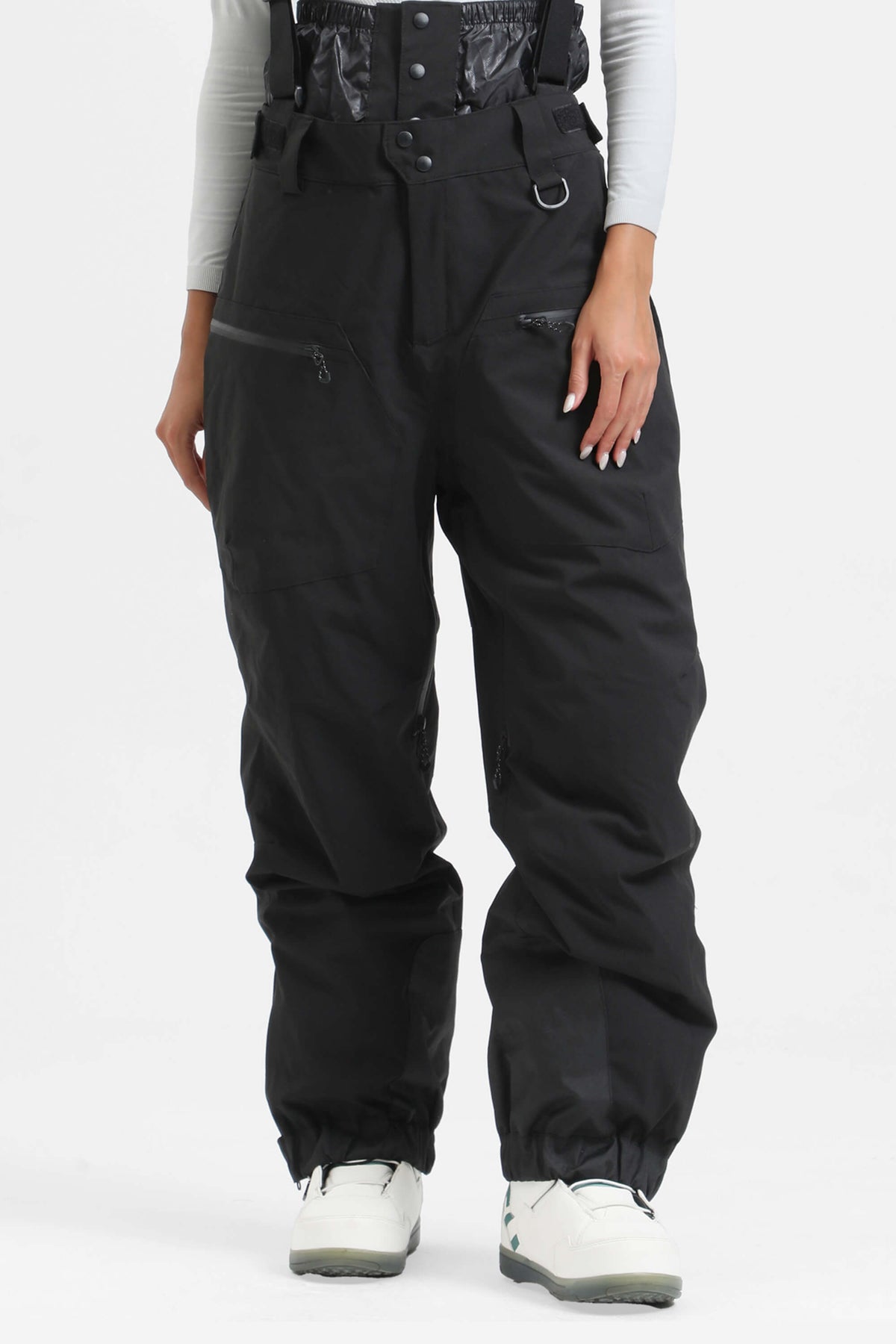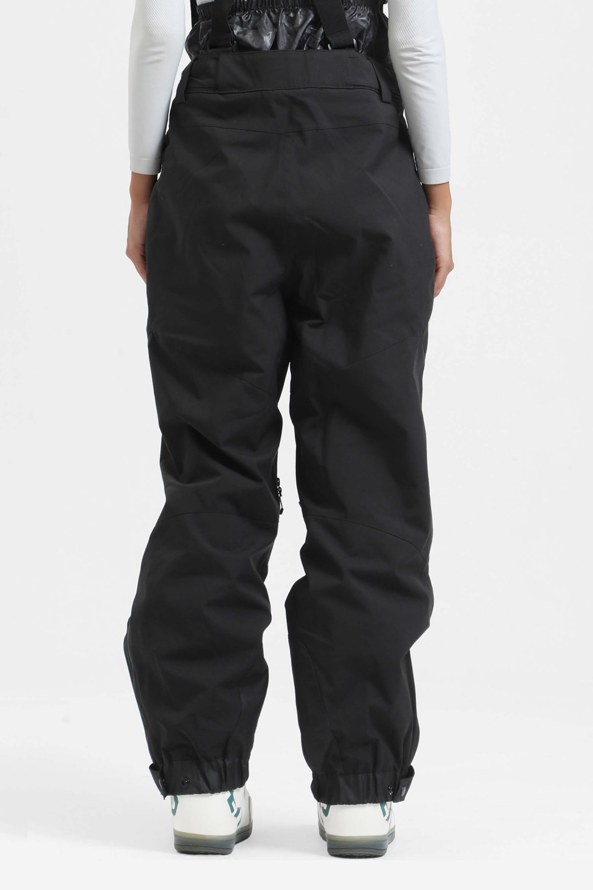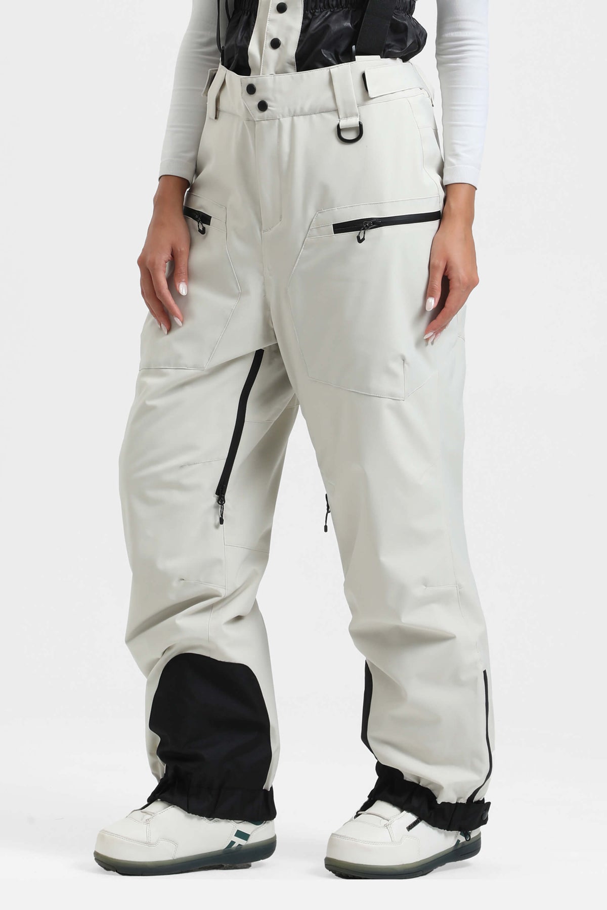 Women's White Insulated Baggy Snow Pants With Detachable Suspenders