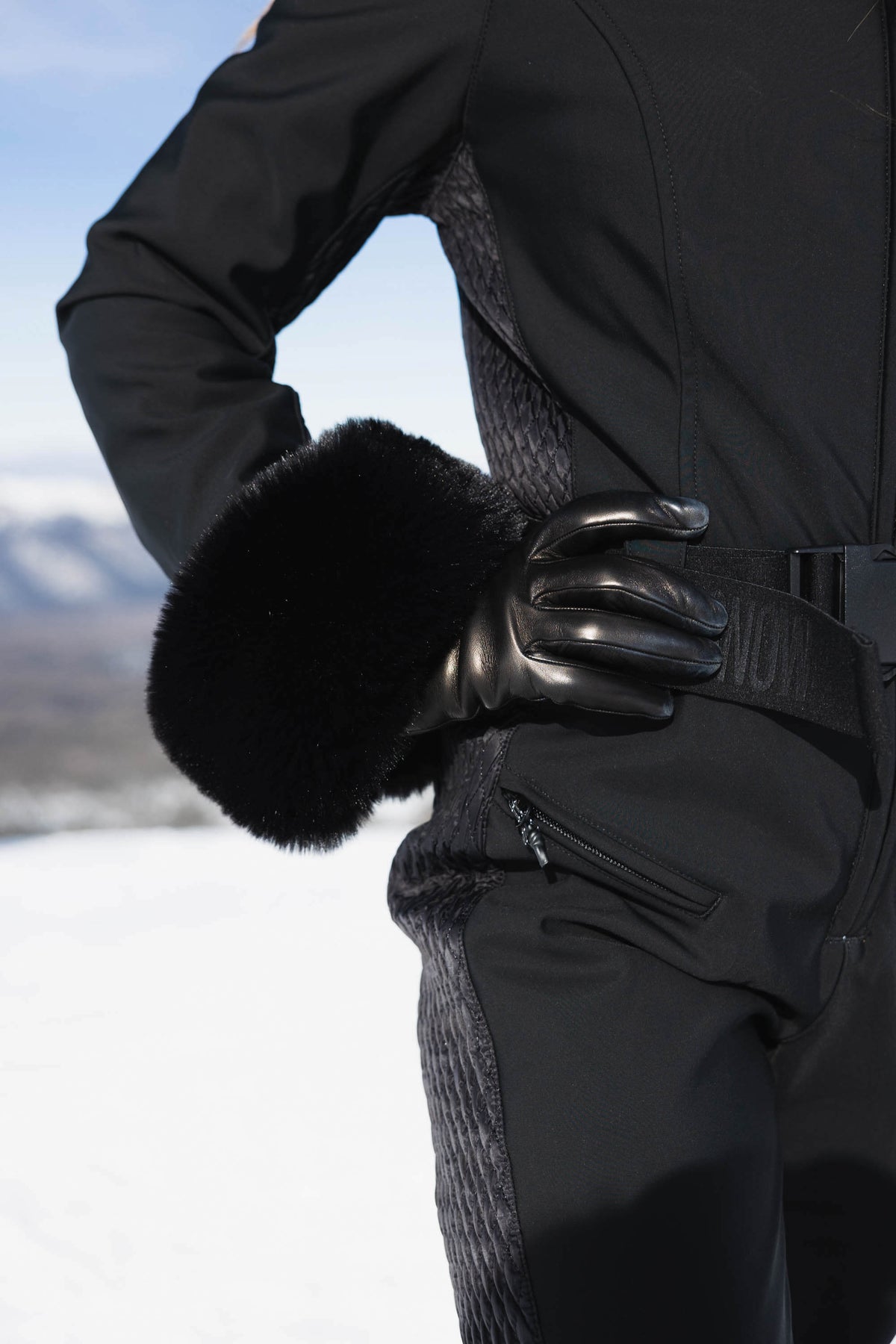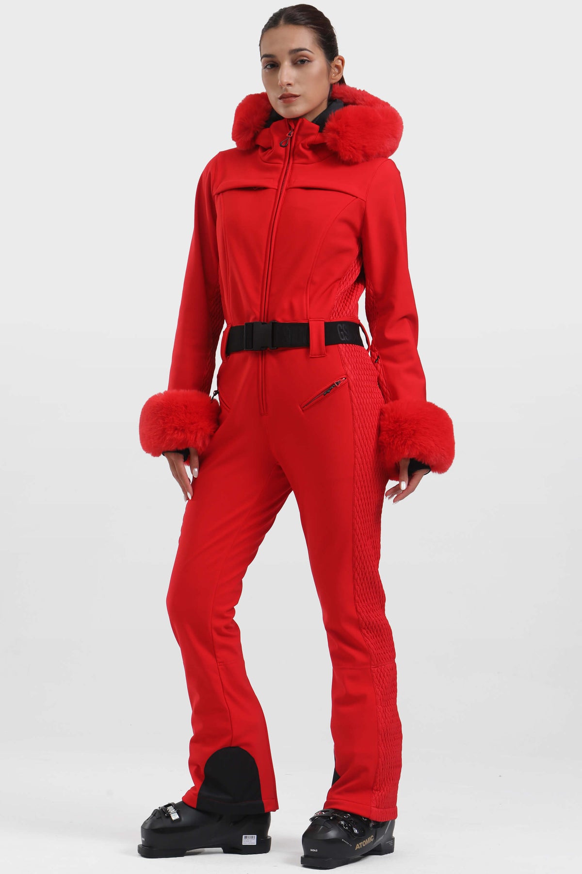 The one-piece ski jacket features an extensive faux fur design, adding an elegant touch to your alpine skiing look. The removable faux fur offers versatile styling, while the waterproof fabric ensures you stay dry. Plus, the padded lining provides warmth for cold days on the slopes.