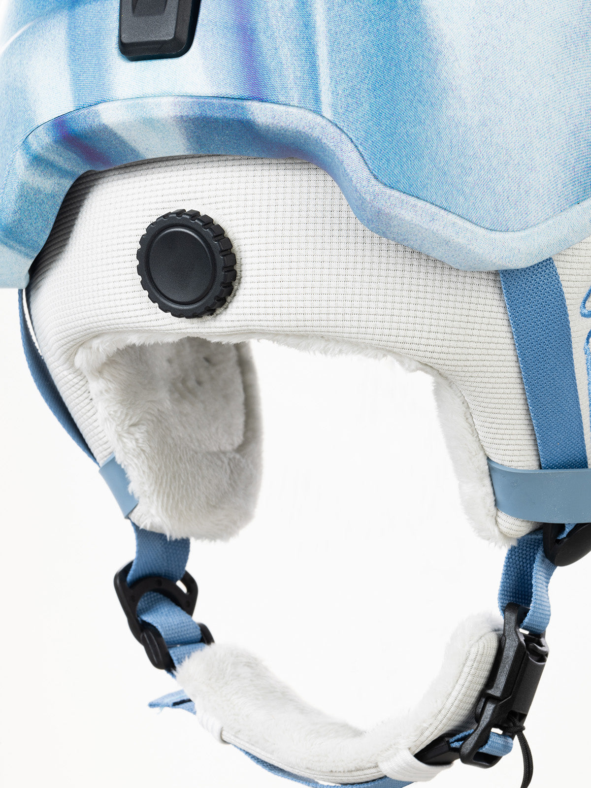 Meet your child’s new slope companion! The Kids' Glam Helmet combines PC+EPS construction for strong impact protection without the extra weight. Adjustable ventilation and integrated visor vents keep airflow smooth and goggles fog-free. Vista head adjustment and FIDLOCK magnetic buckle ensure a precise, secure fit. Removable lining, ear pads, and snow goggle clip with chin fleece pad add all-day comfort and adaptability.