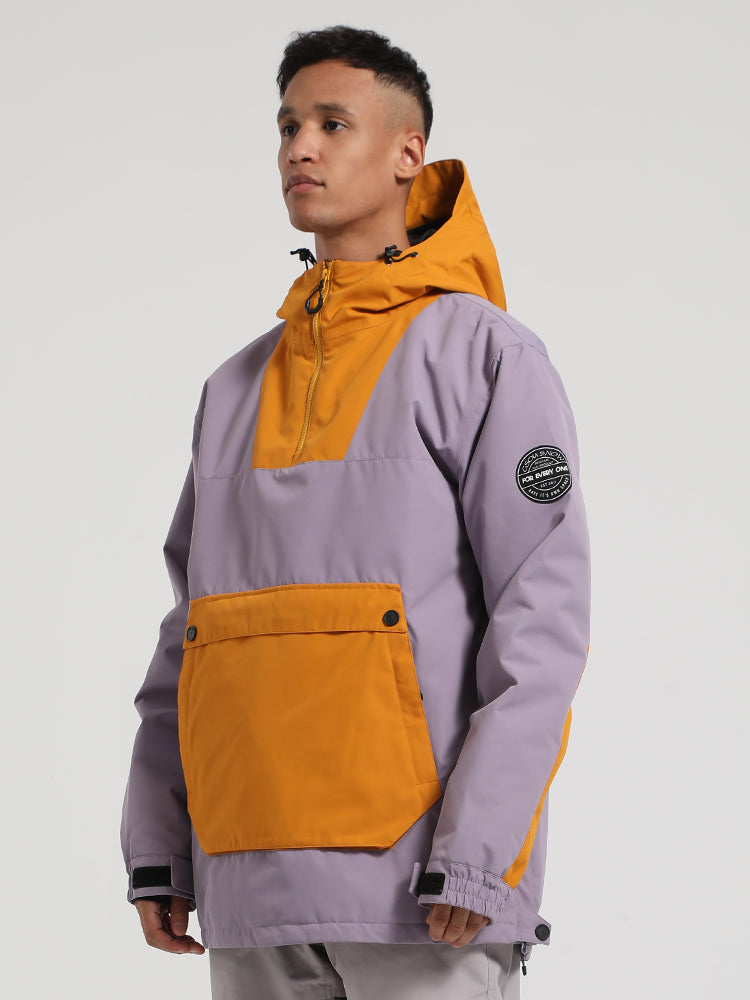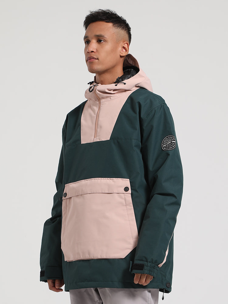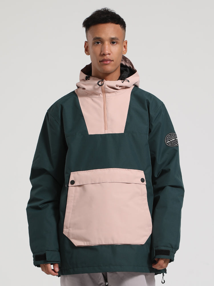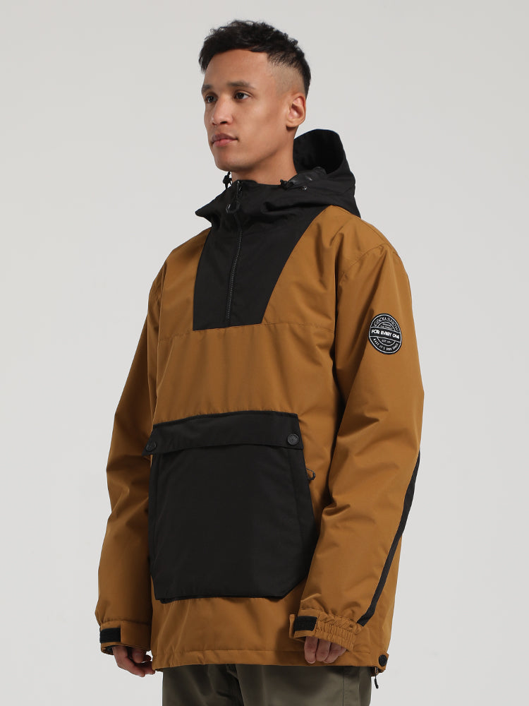 Herren-Schneeanoraks in Schwarz und Braun mit Patchwork-Kängurutaschen