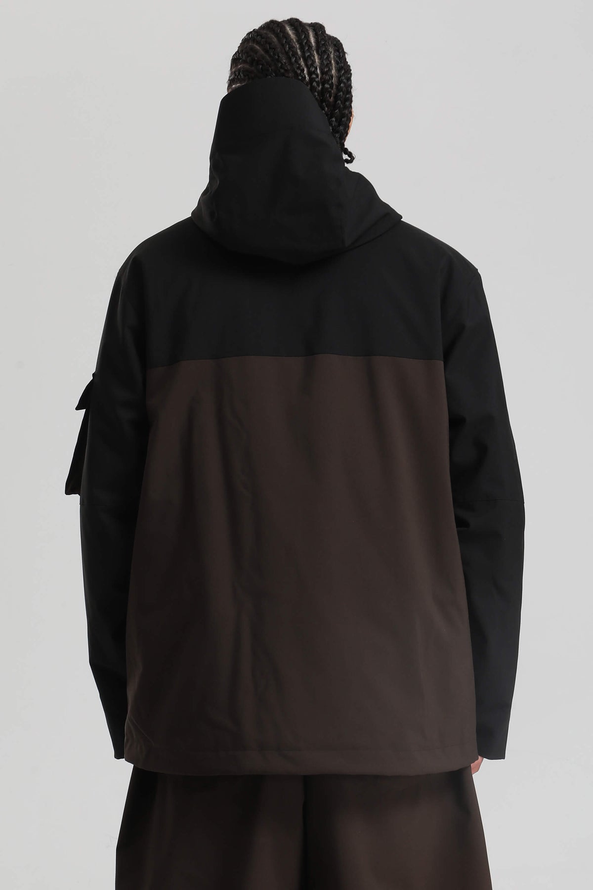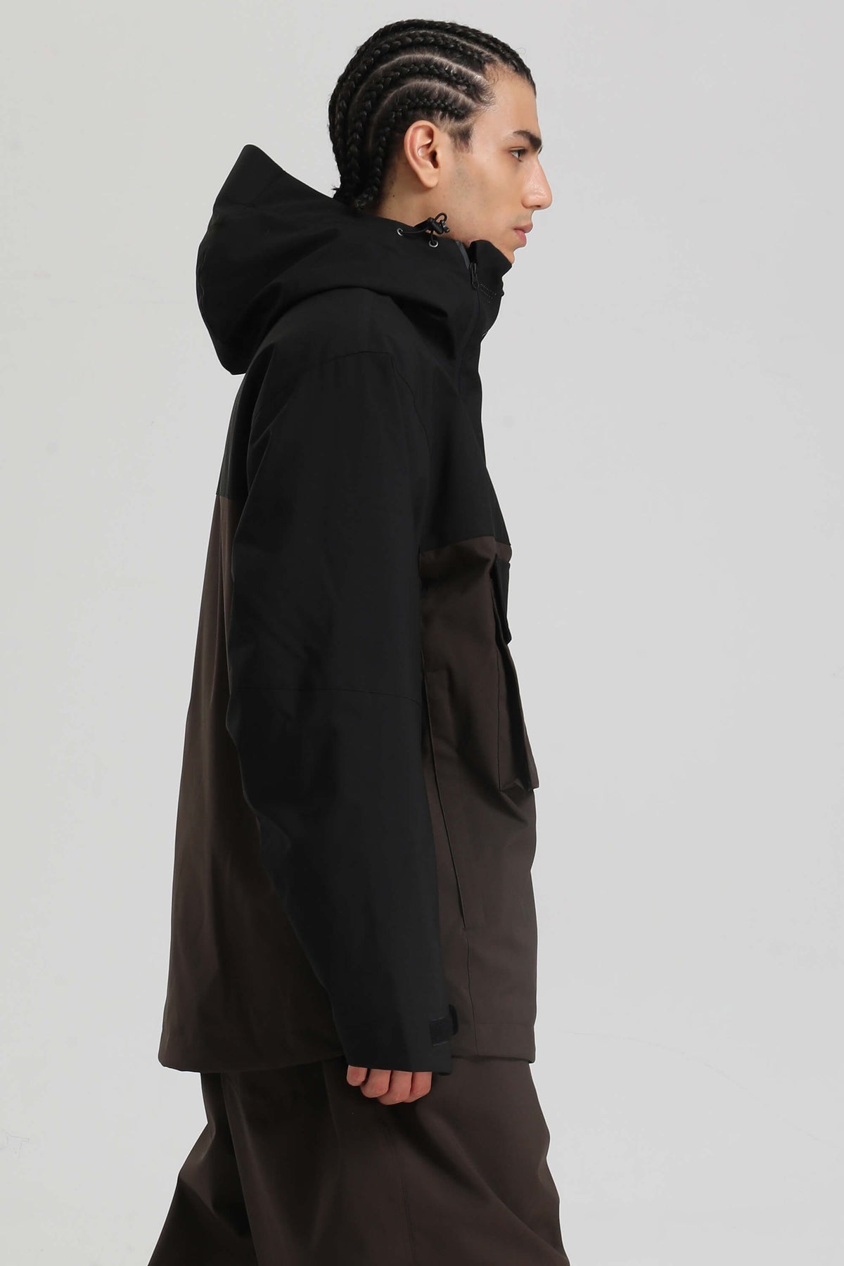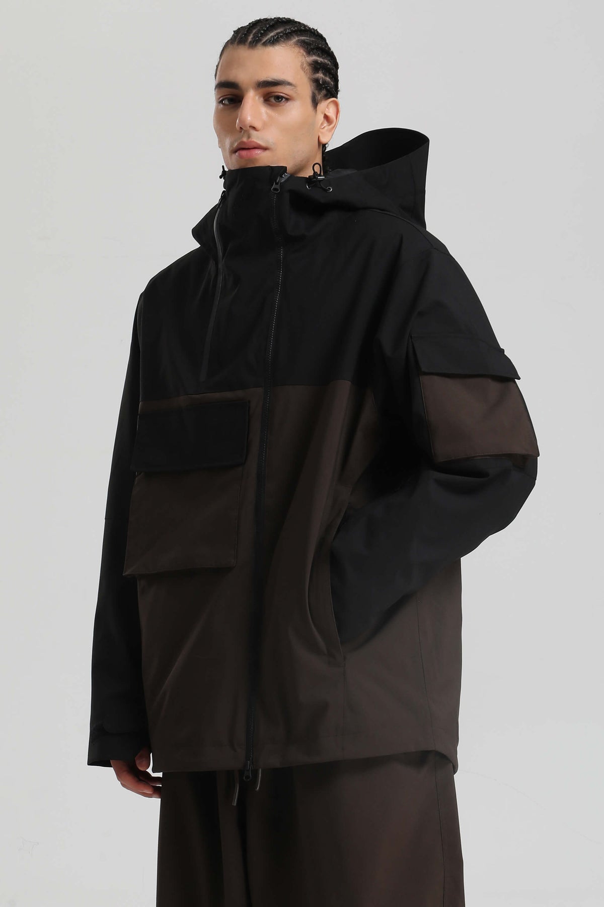 Herrenjacke in Schwarz und Kaffeefarben mit asymmetrischem Reißverschluss, praktischen Taschen und wasserdichter Schneeschutzfunktion