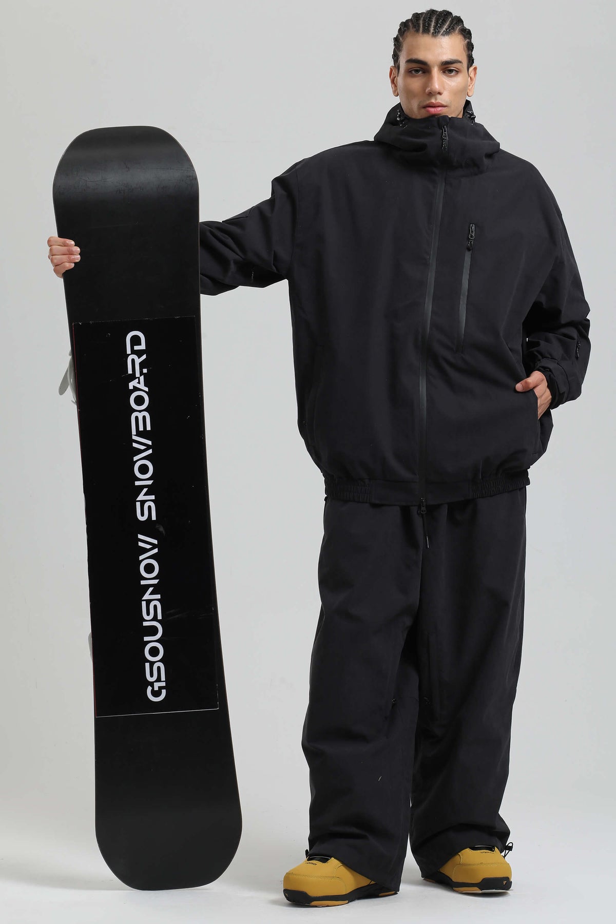 Designed for snowy pursuits, this minimalist jacket features a 20K waterproof, 15K breathable shell with DWR finish and taped zippers. Details like a fleece-lined collar, underarm vents, and adjustable hood offer comfort in motion. Multiple hidden and sleeve pockets keep gear secure, while a stretch powder skirt and thumbhole cuffs seal out snow.