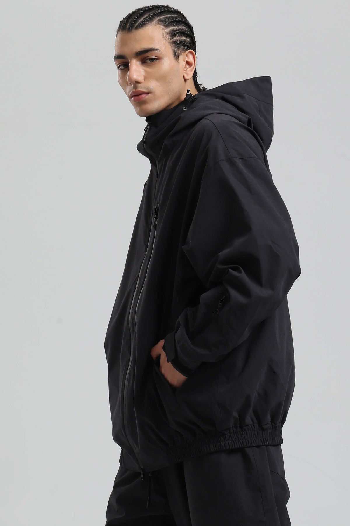 Herrenjacke in Schwarz mit Washed-Effekt, minimalistisch, mit mehreren Taschen, wasserdicht, für den Schnee