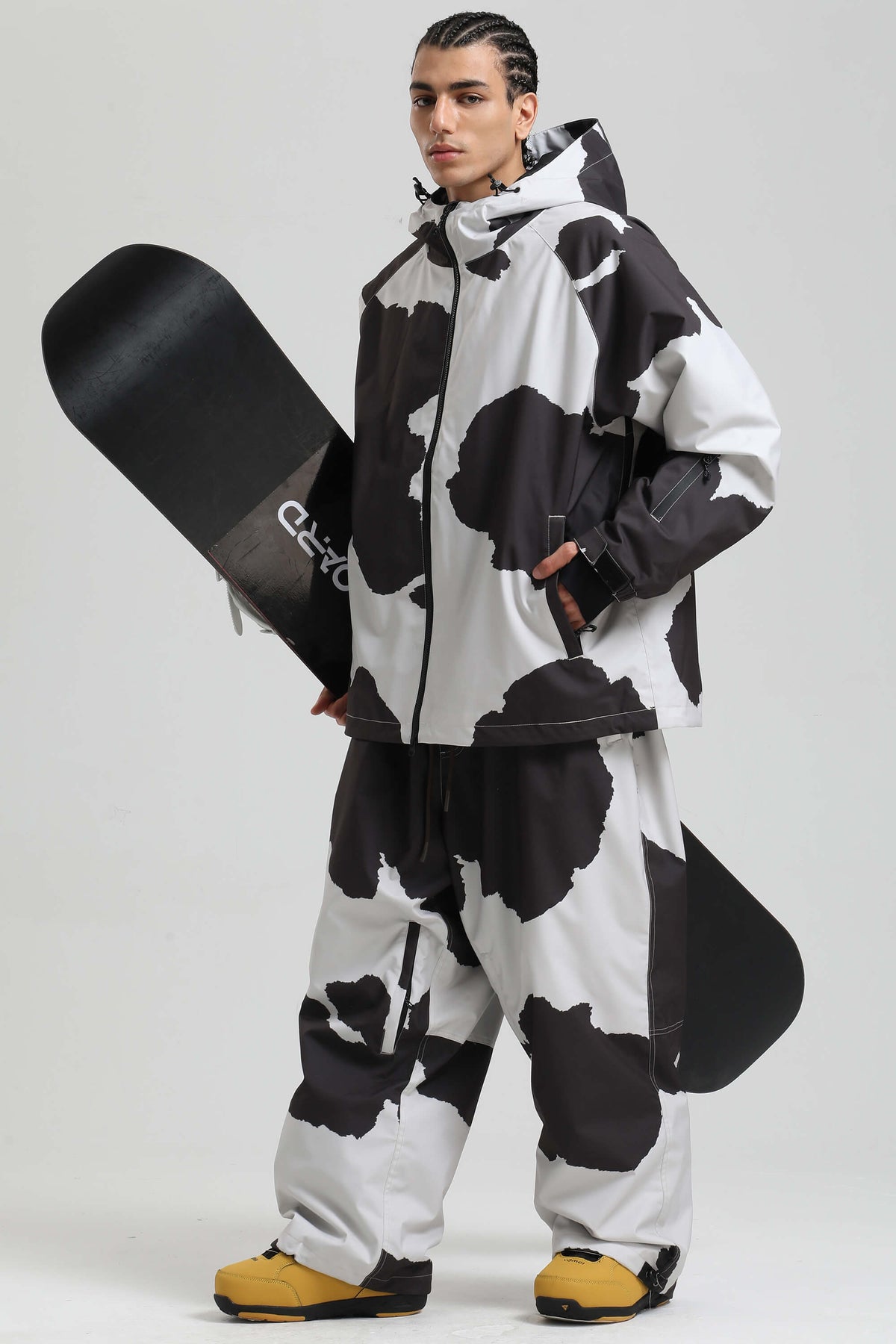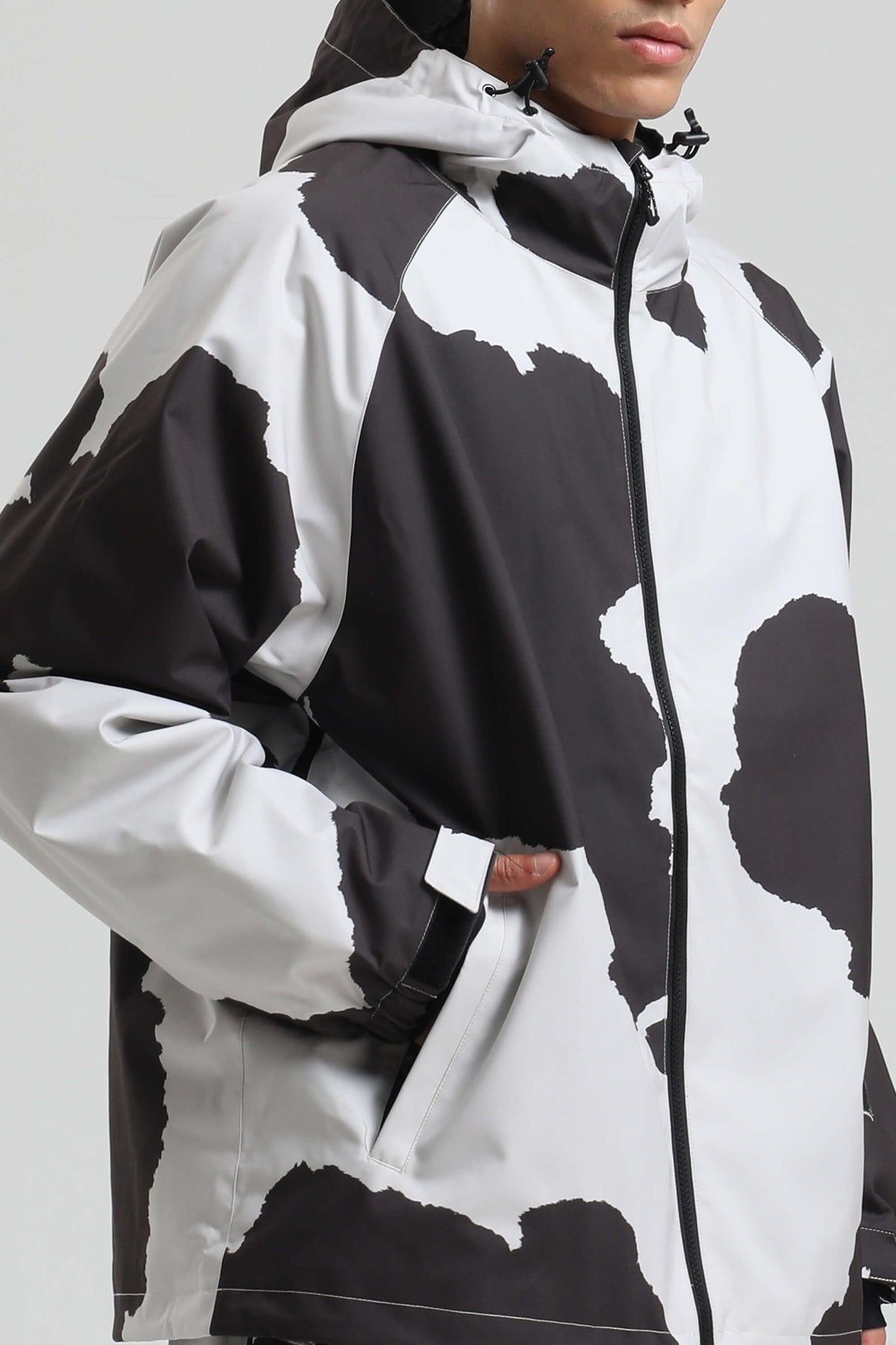 Herren-Schneejacke mit Kuhmuster, zwei Belüftungsöffnungen, minimalistisch, wasserdicht und isoliert