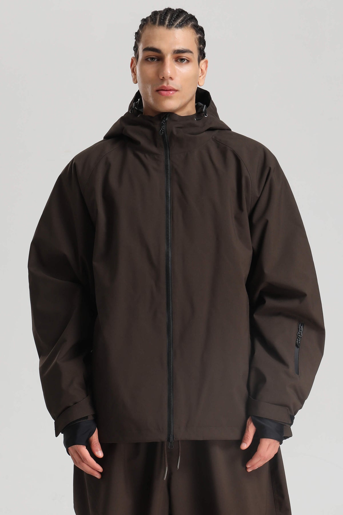 Dieser oversized Anorak ist schneetauglich und stilvoll und vereint minimalistisches Design mit technischer Leistungsfähigkeit. Das 15K wasserdichte und 10K atmungsaktive Obermaterial ist mit zwei Belüftungsöffnungen unter den Achseln und einem Zwei-Wege-Reißverschluss vorne ausgestattet, um unterwegs für Luftzirkulation zu sorgen. Ein mit Fleece gefütterter hoher Kragen, ein Schneefang und Ärmelbündchen mit Daumenlöchern halten die Wärme drinnen und den Schnee draußen.