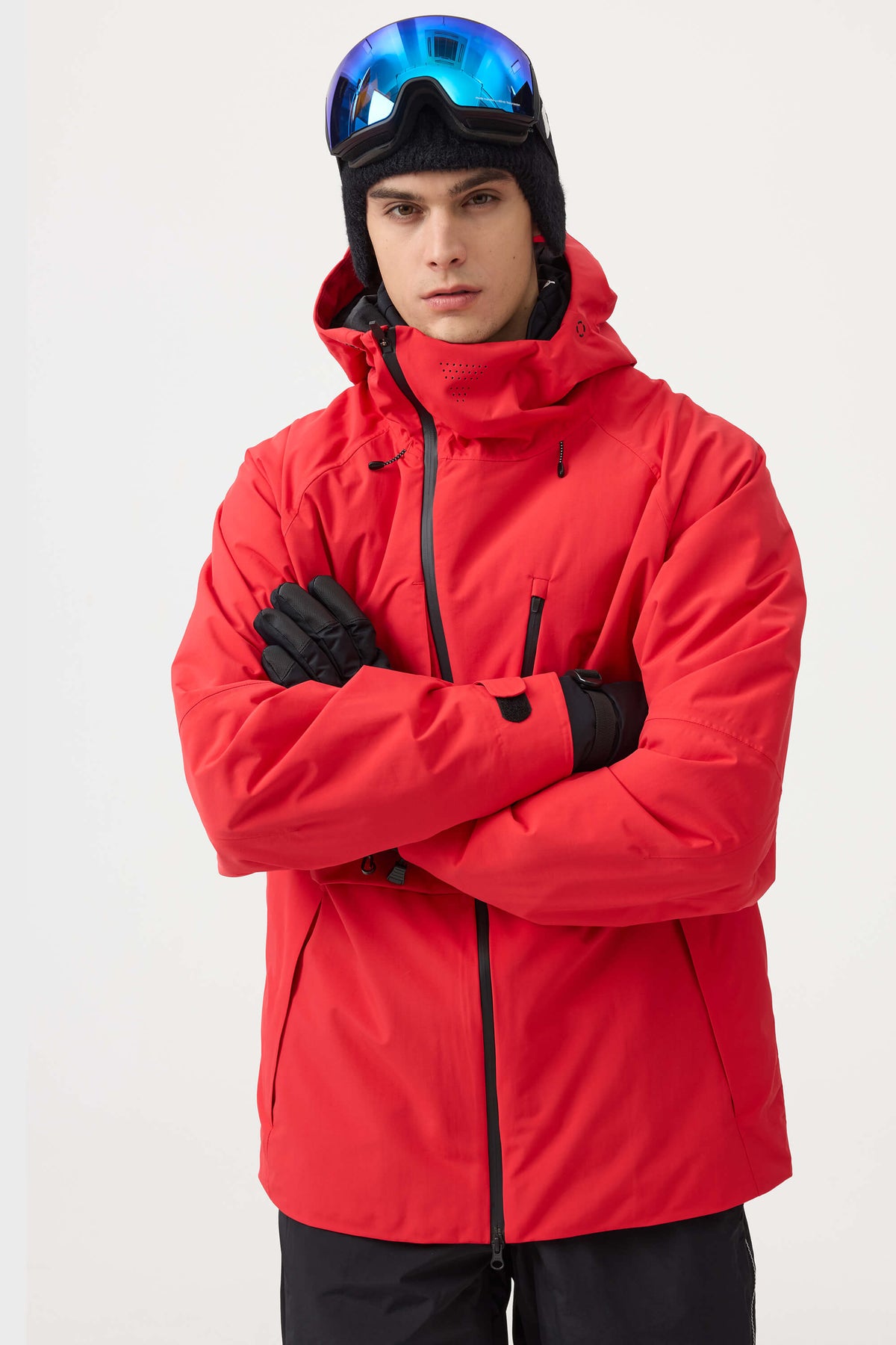 Neonrote, voll wasserdichte Schneejacke für Herren mit Belüftungsöffnungen im Gesicht und mehreren Taschen