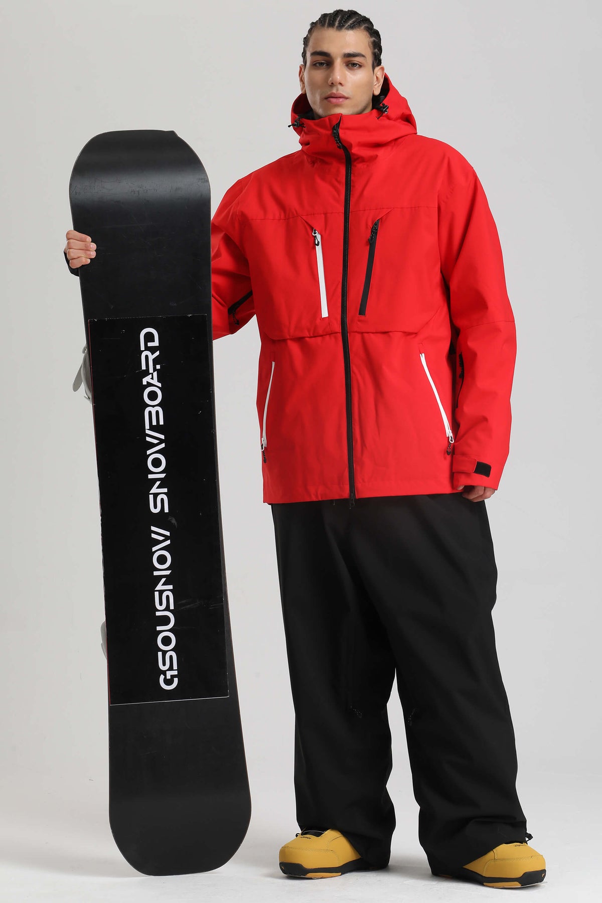 Herren-Schneejacke in Rot mit kontrastierendem Reißverschluss, vollständig versiegelt, wasserdicht und isoliert