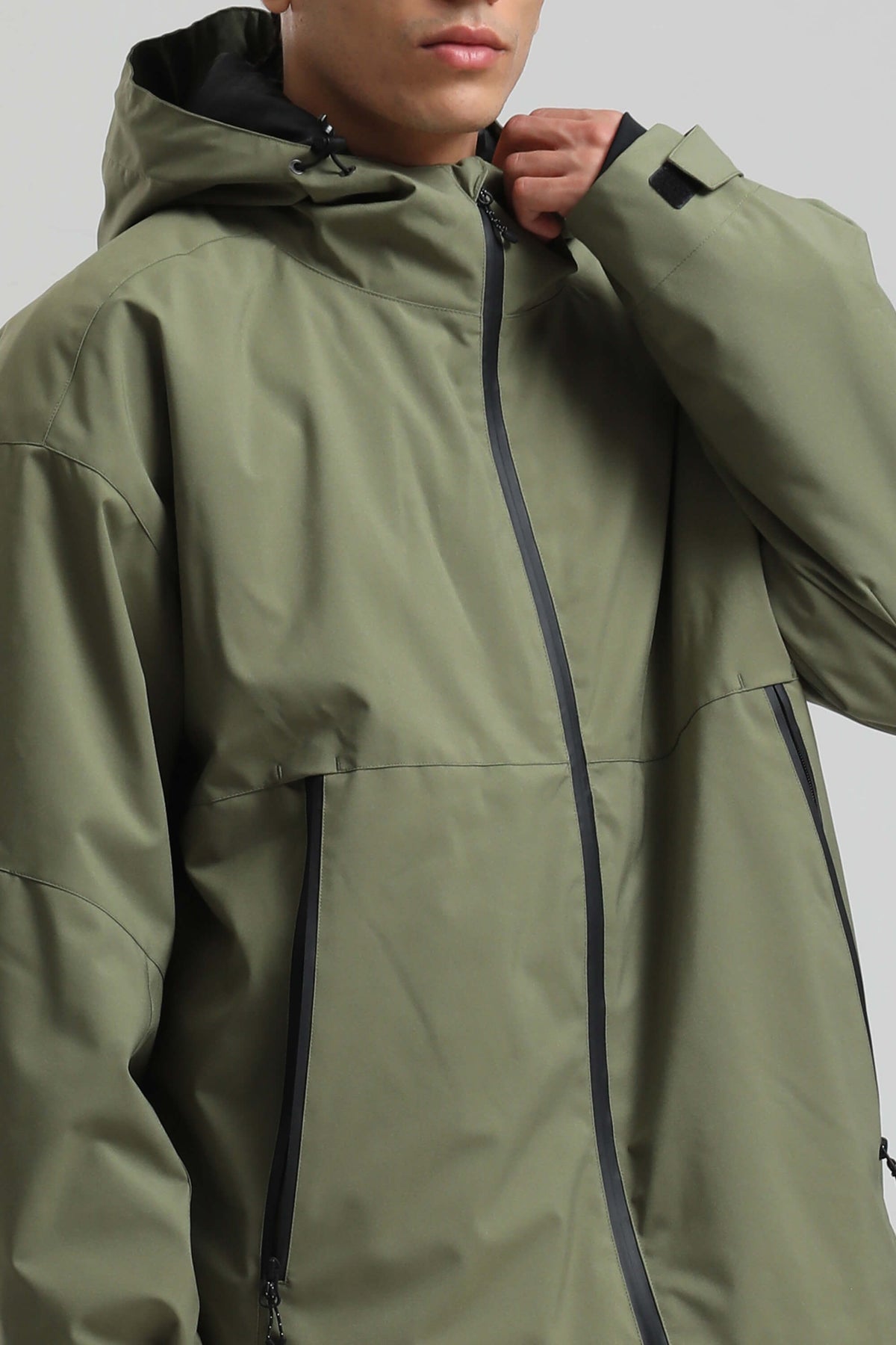 Herren-Schneejacke in Armeegrün, vollständig versiegelt, mit zwei Belüftungsöffnungen, minimalistisch, isoliert