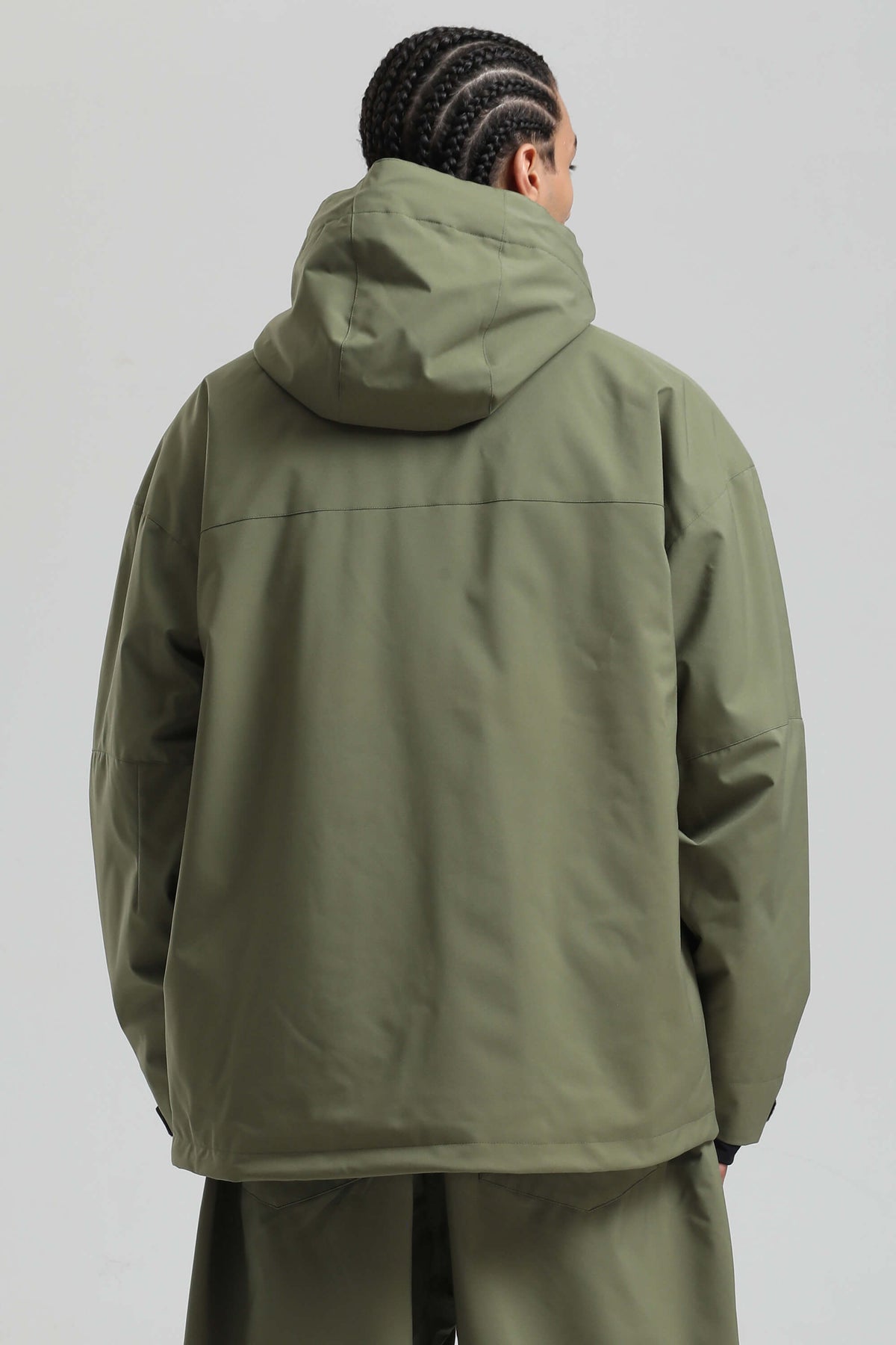 Clean and functional, this oversized snow jacket is built for snow-filled days. The fully seam-sealed shell offers 15K waterproofing and 10K breathability, with YKK zippers and a water-resistant coating for long-lasting protection. Dual underarm vents and a two-way front zip manage airflow, while the chin-high brushed collar and powder skirt keep warmth locked in.