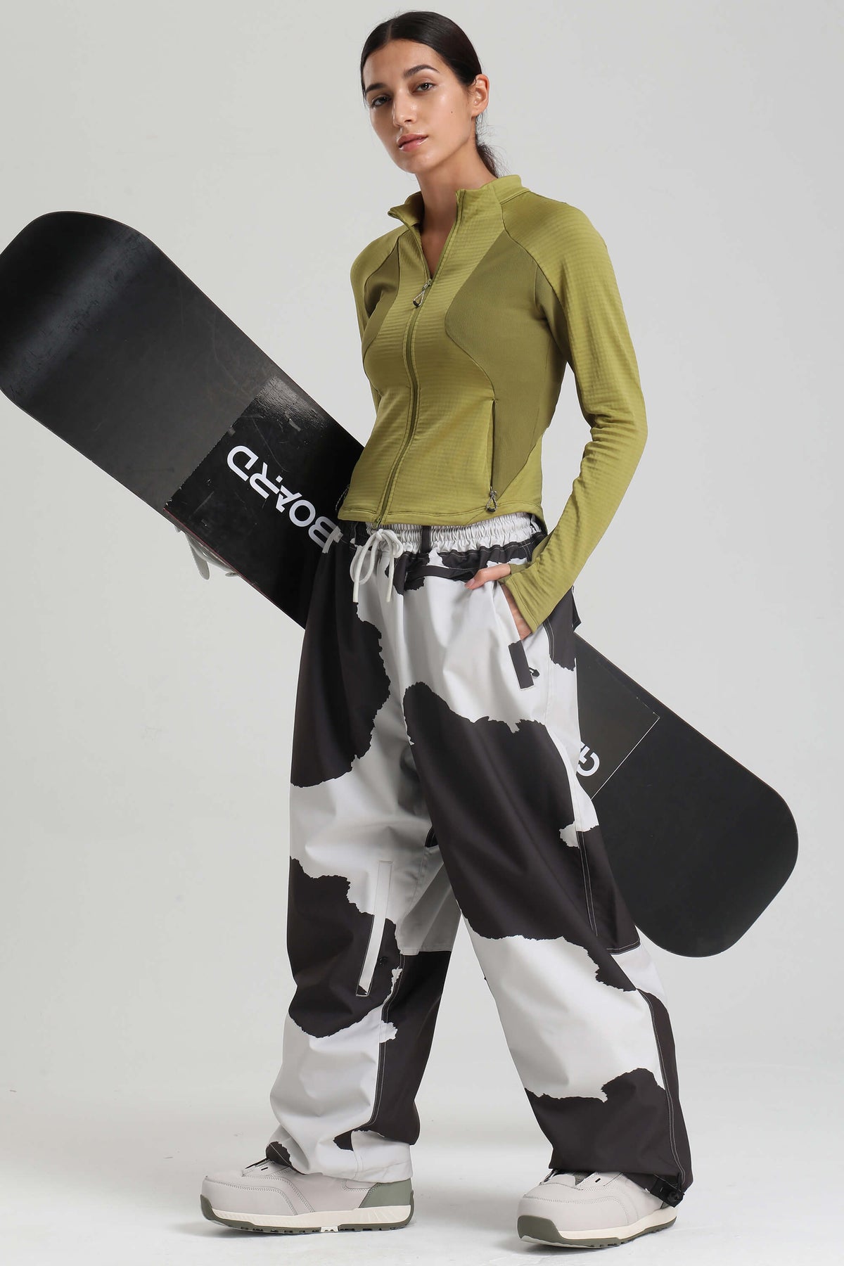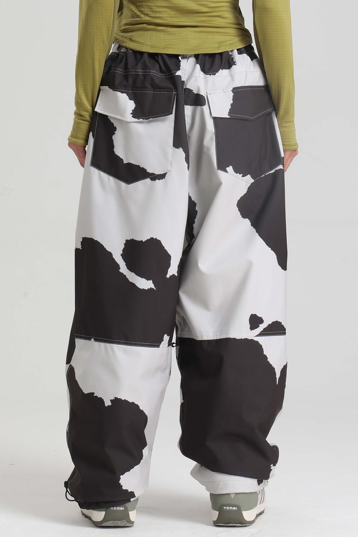 Damen-Schneehose mit Kuhmuster, weit geschnitten, Kordelzug, strapazierfähig