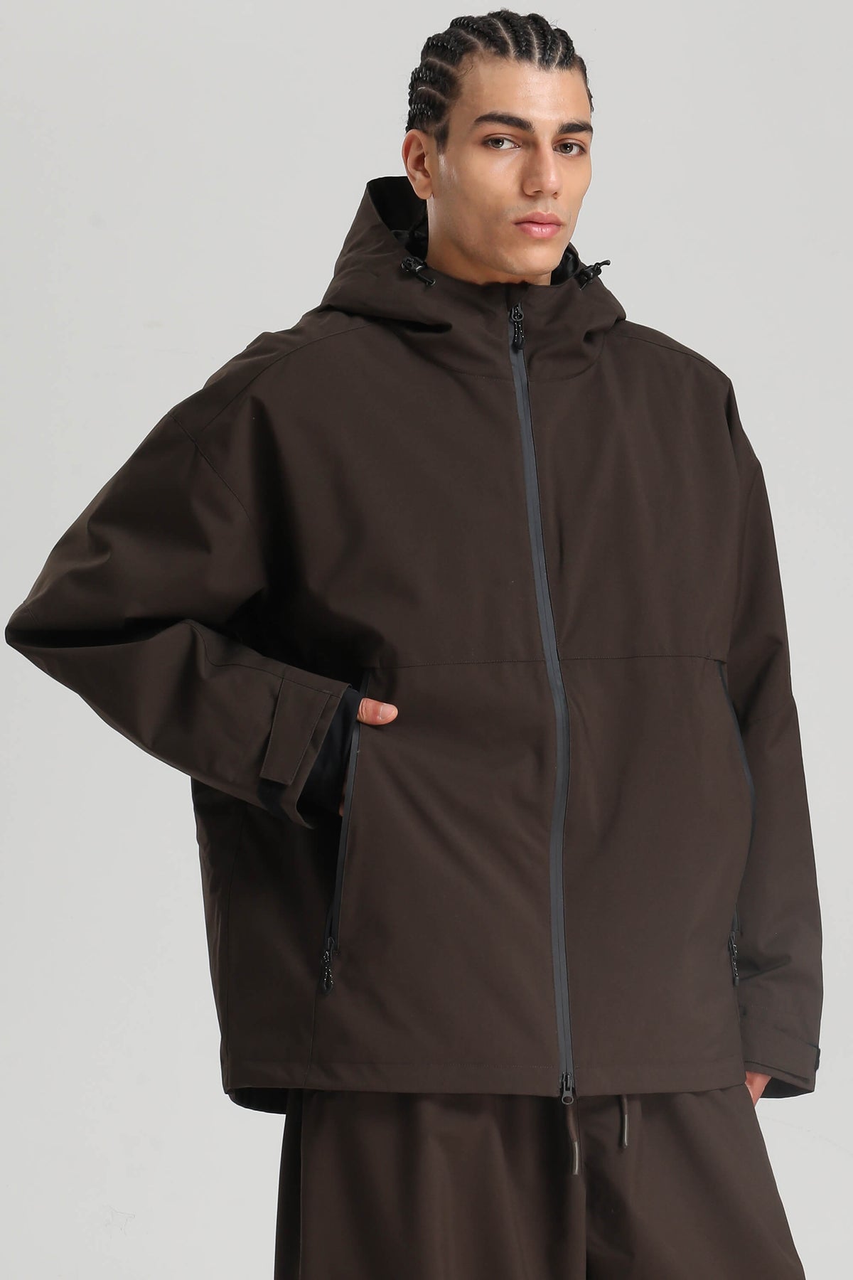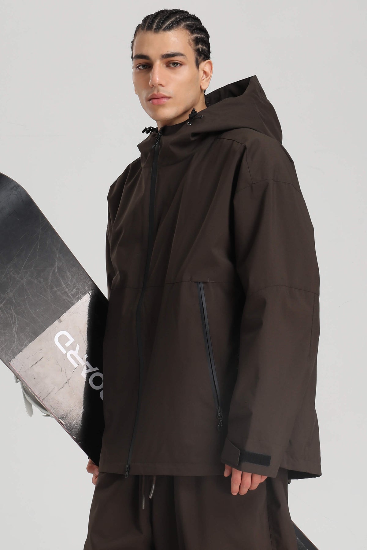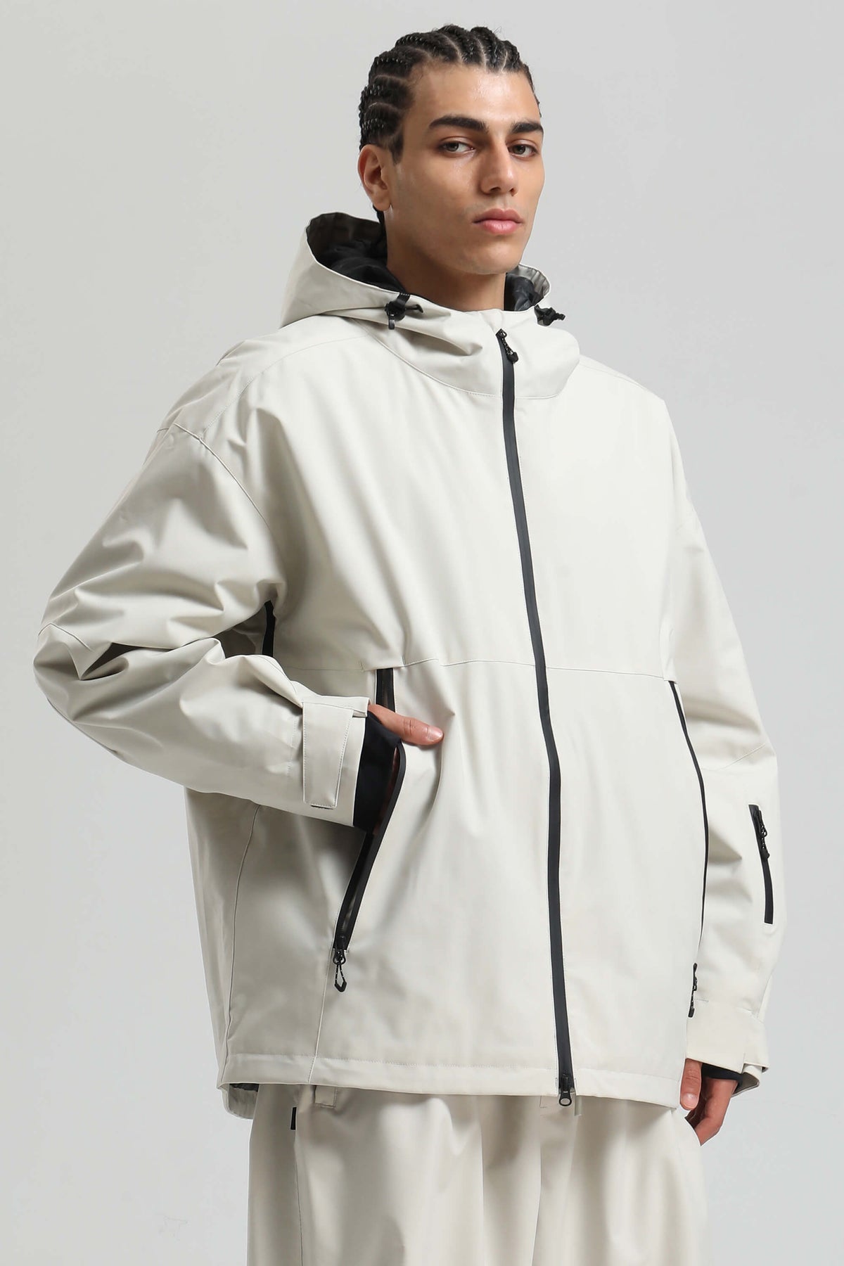 Clean and functional, this oversized snow jacket is built for snow-filled days. The fully seam-sealed shell offers 15K waterproofing and 10K breathability, with YKK zippers and a water-resistant coating for long-lasting protection. Dual underarm vents and a two-way front zip manage airflow, while the chin-high brushed collar and powder skirt keep warmth locked in.