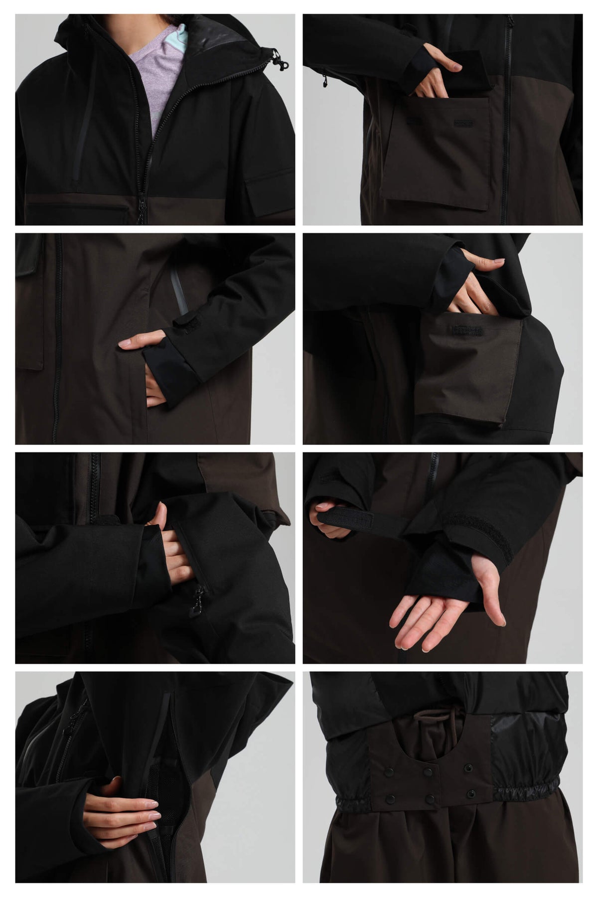 This jacket is designed for outdoor skiing. Waterproof fabric and insulated padding keep the wind and snow out, while mouth vents combined with underarm mesh vents allow for better airflow. Multiple pockets for storing all the essentials. A powder skirt keeps snow out, and the unique asymmetrical zip front and colorblock design add style to this jacket.