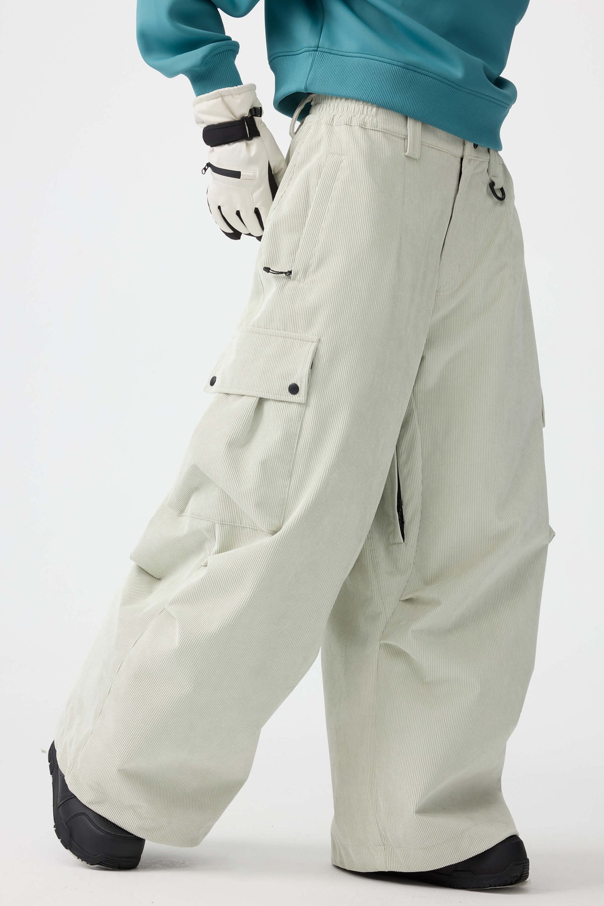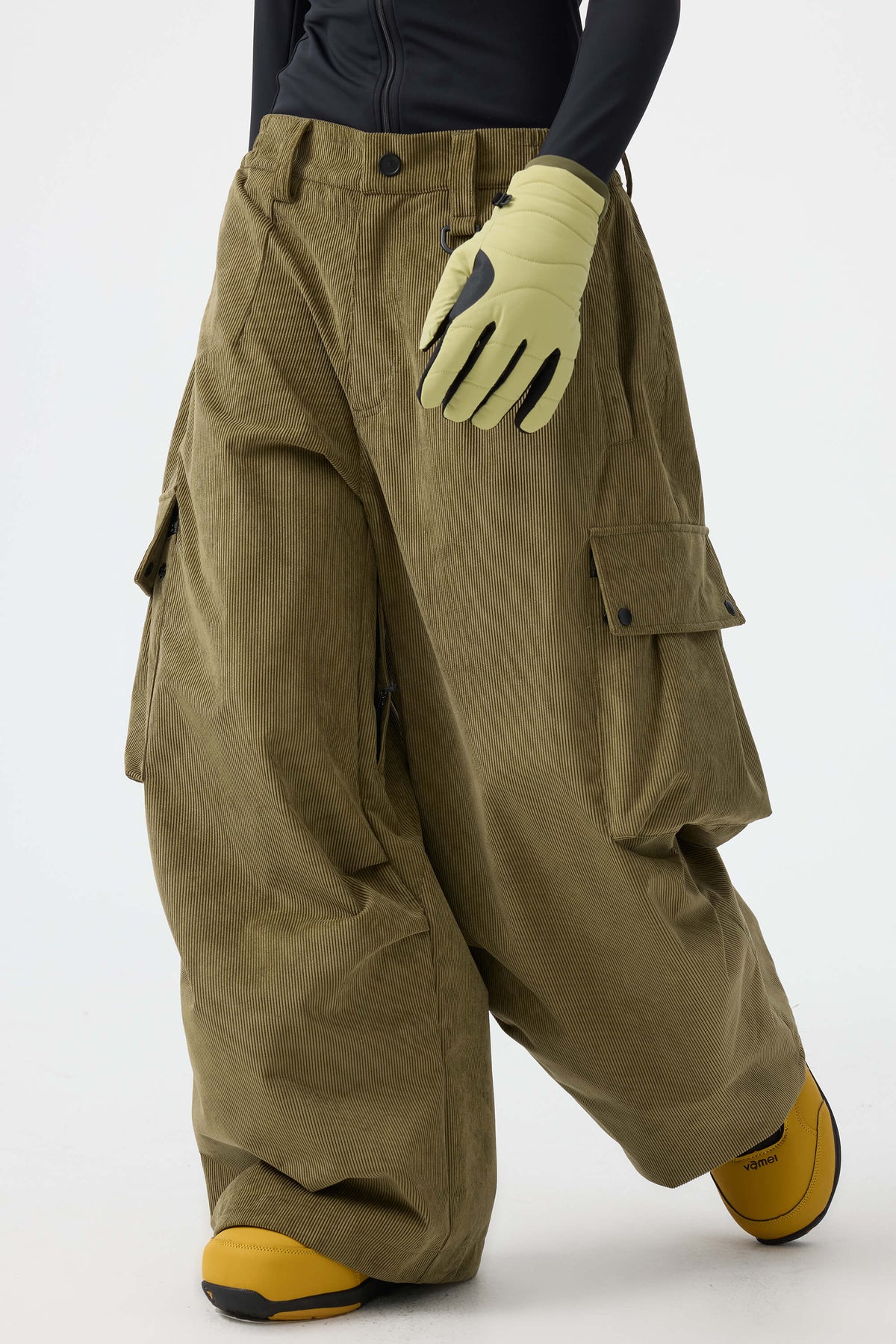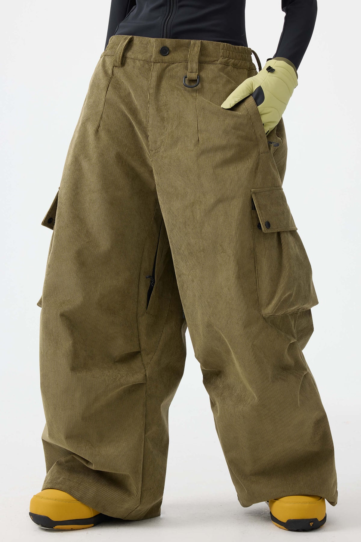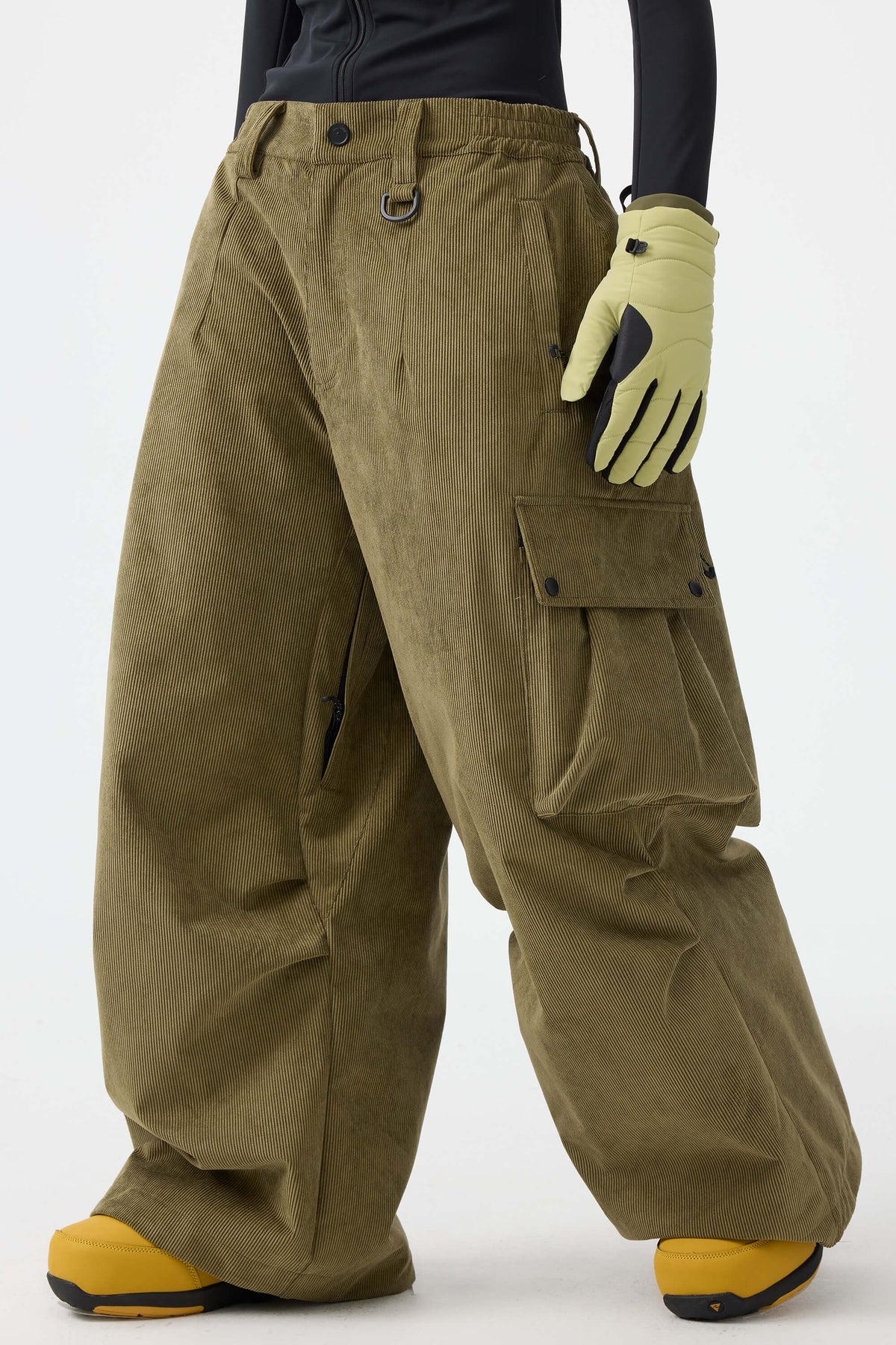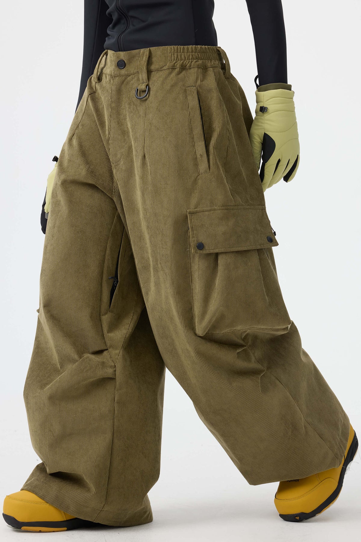 Pantalones de nieve para mujer, de pana suave estructurada, holgados, color verde oliva.