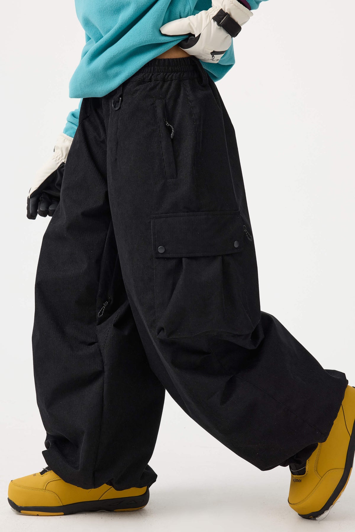 Crafted from unique corduroy fabric, these pants offer a retro style with softness and warmth. Featuring water- and wind-resistant linings at the waistband and cuffs, along with zippered thigh vents for quick heat release, they combine style with excellent protection.