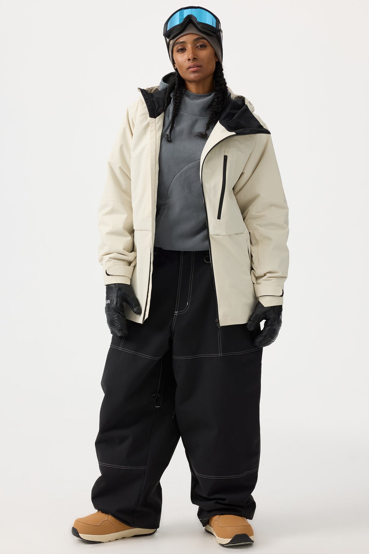 Pantalones de trabajo Oxford holgados beige para mujer