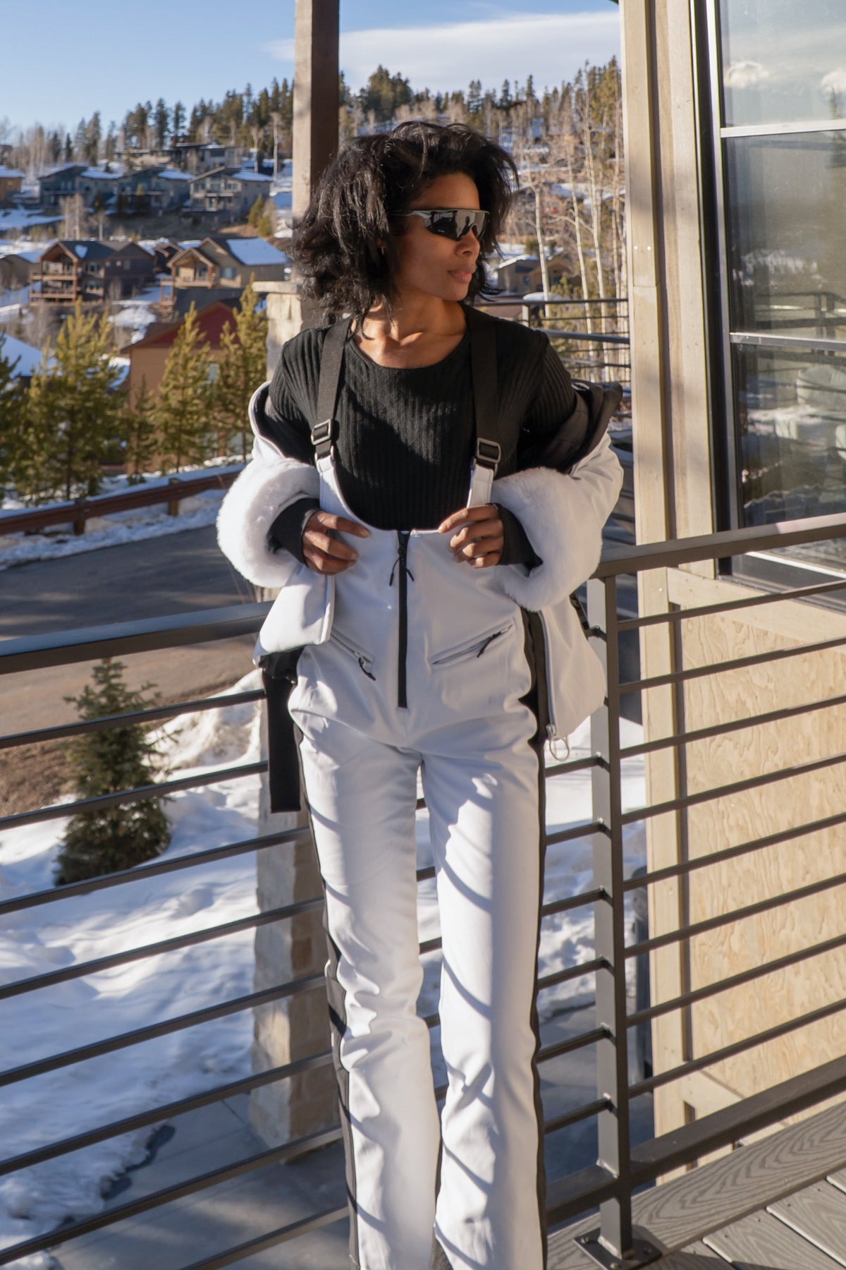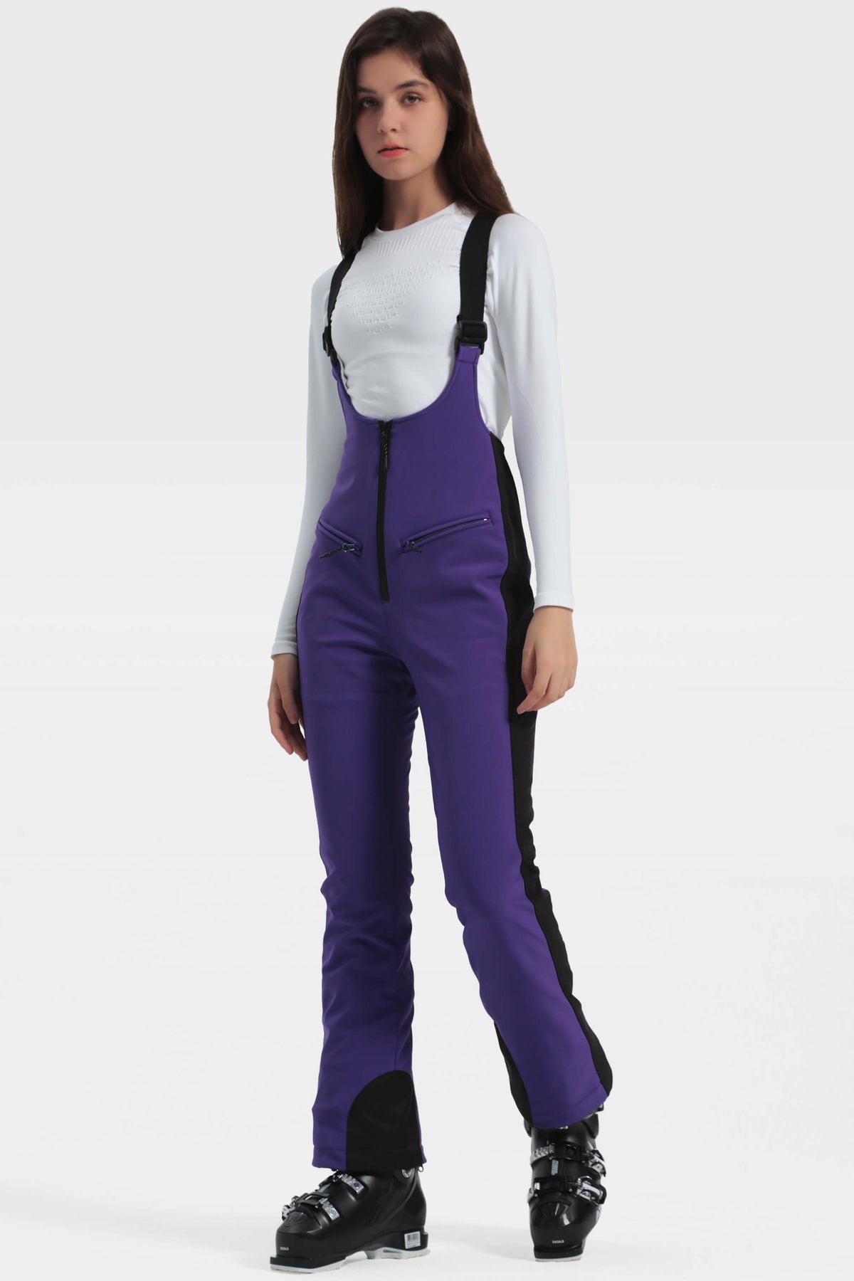 The slim ski bibs are made of 100% polyester fabric, providing warmth and waterproof protection. The bib features two pockets, and the center zipper is designed with a fully sealed waterproof zipper. The hem is equipped with an abrasion-resistant protection device.