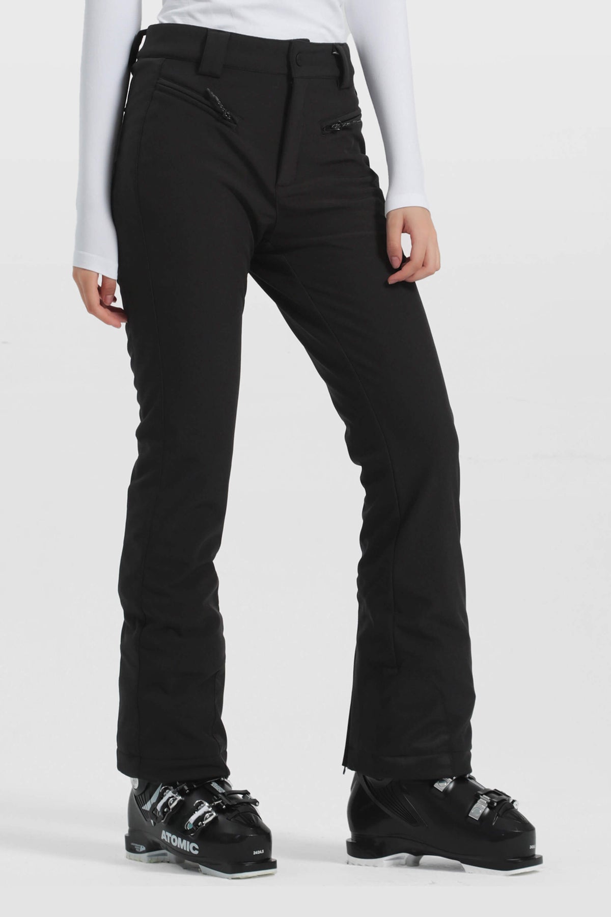 Pantalones de esquí slim fit para mujer con forro de terciopelo blanco