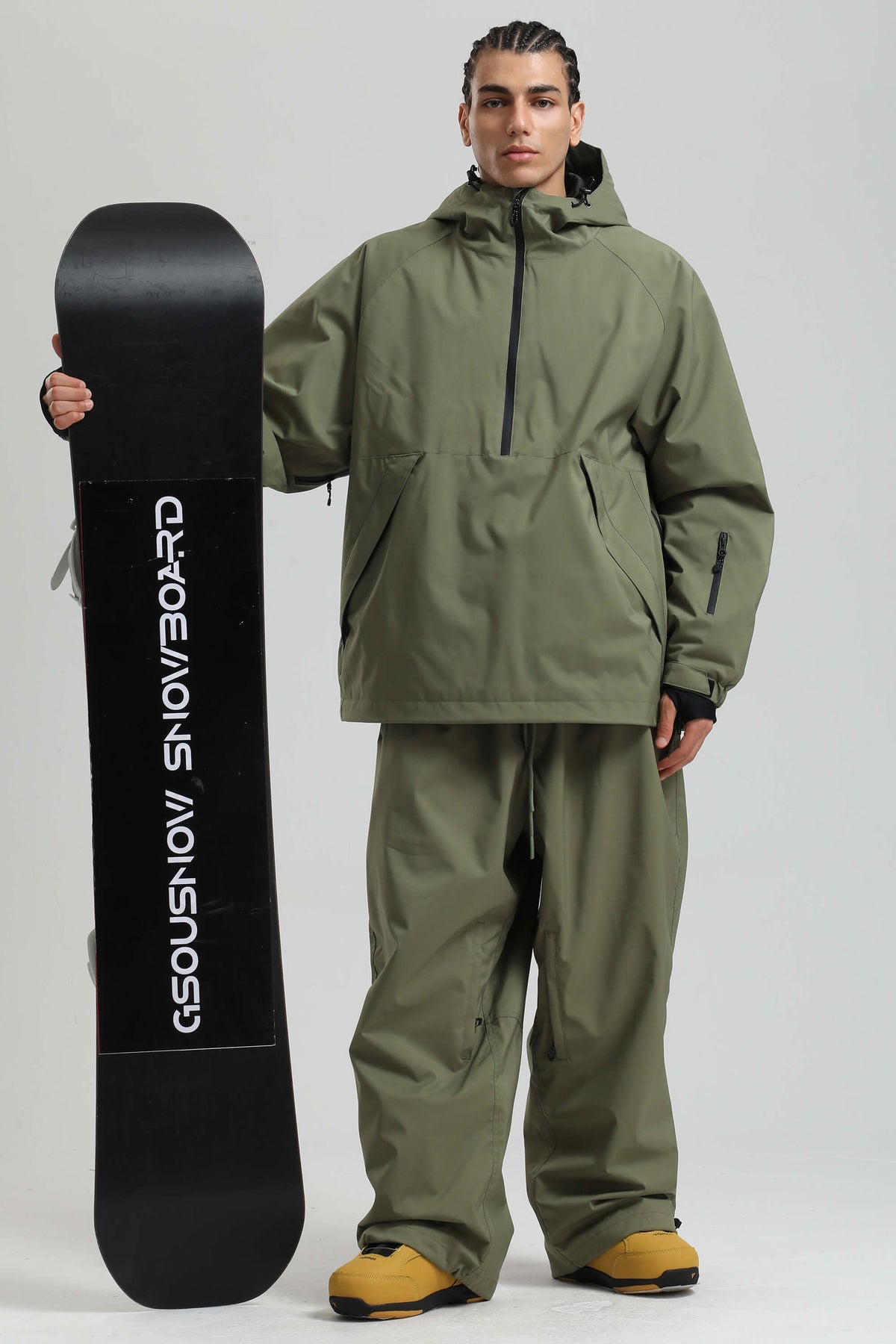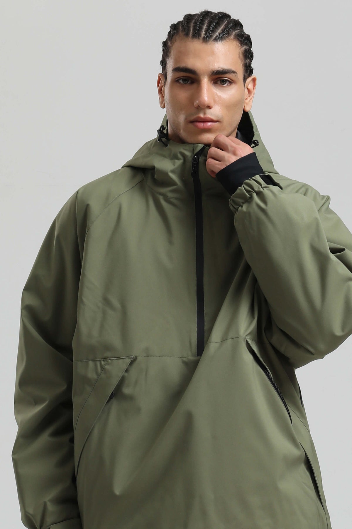 Anorak de neige minimaliste vert armée pour homme, avec demi-fermeture éclair, imperméable et isolant