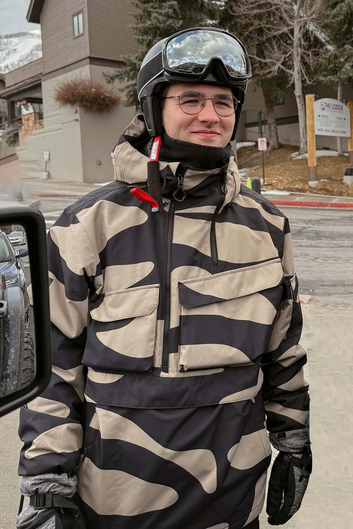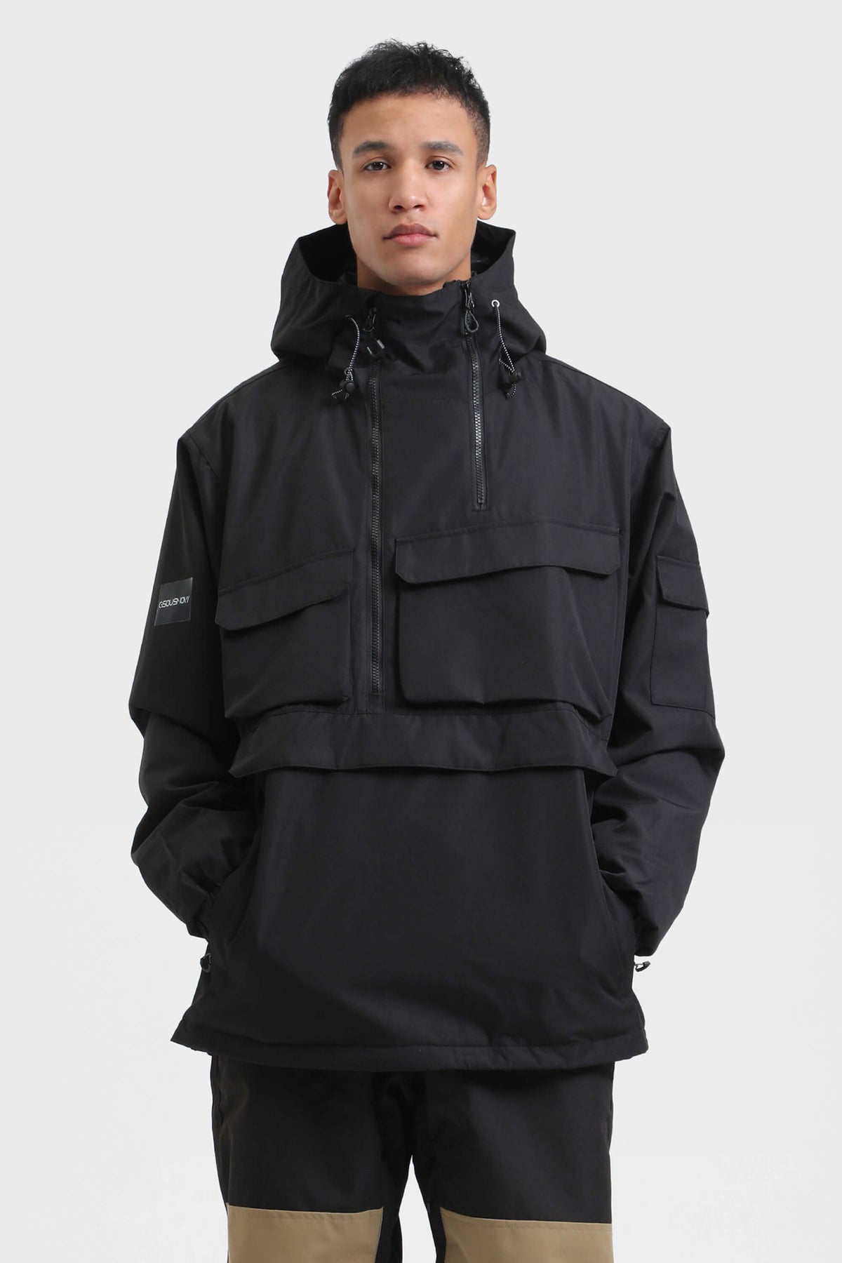 Anoraks de neige imperméables et isolants pour hommes, couleur camouflage noir, avec poche kangourou asymétrique