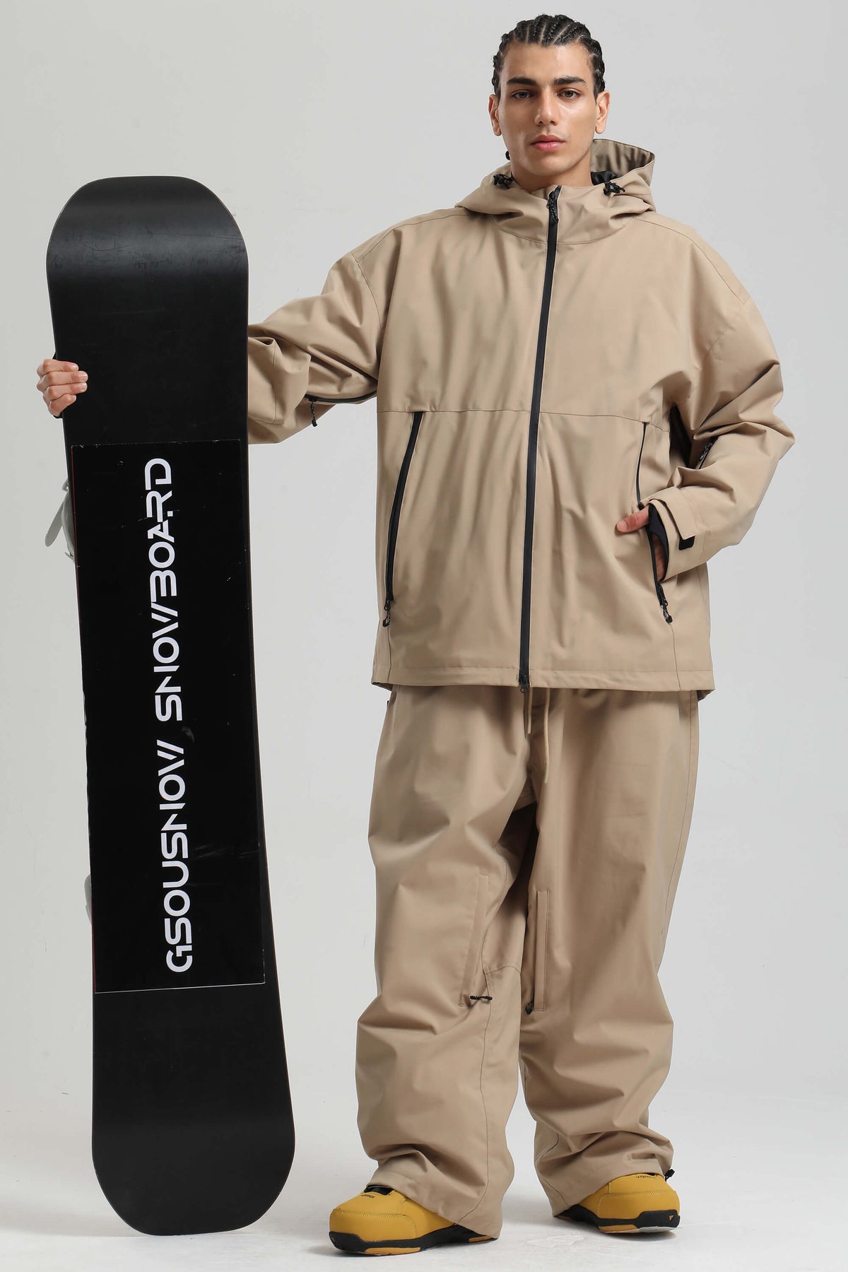 Clean and functional, this oversized snow jacket is built for snow-filled days. The fully seam-sealed shell offers 15K waterproofing and 10K breathability, with YKK zippers and a water-resistant coating for long-lasting protection. Dual underarm vents and a two-way front zip manage airflow, while the chin-high brushed collar and powder skirt keep warmth locked in.