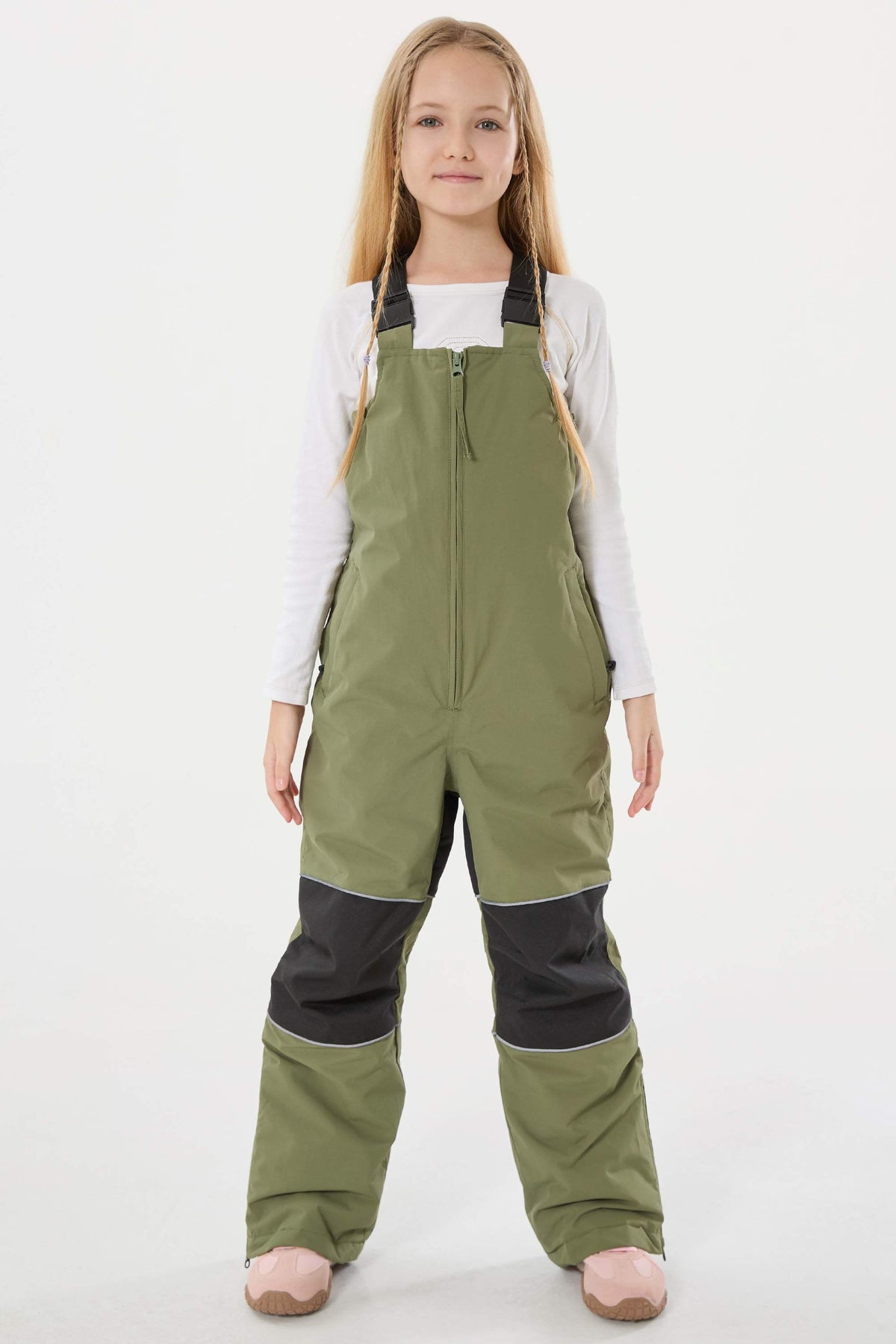 Keep kids warm and comfortable on the slopes with these snow bibs! Adjustable straps and a stretchy back waist ensure a snug fit, while reinforced seat and knees, reflective strips, anti-slip gaiters, and side calf zipper hems with gussets make every snowy adventure safe and easy.