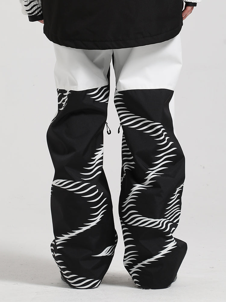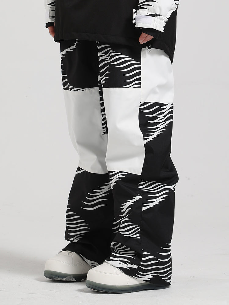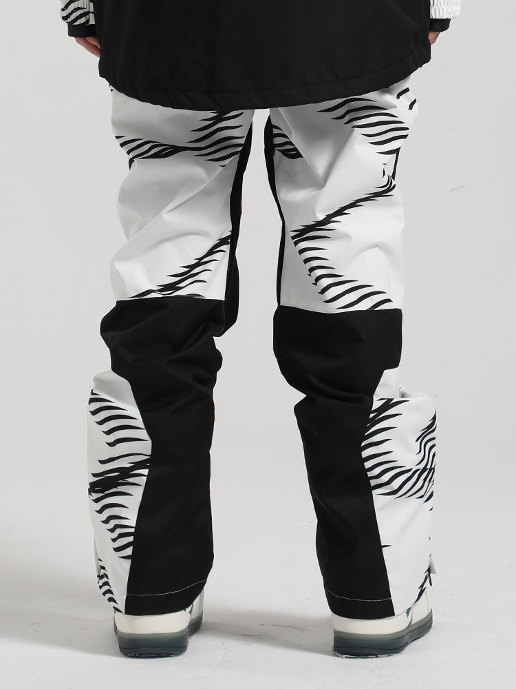 Pantalon de neige blanc à rayures ondulées et blocs de couleur pour homme