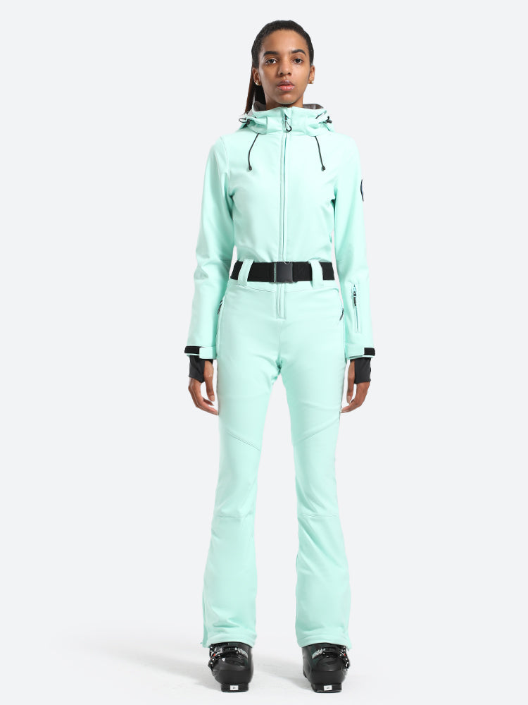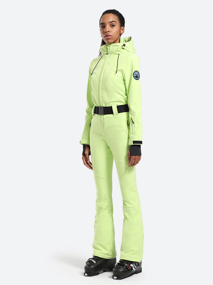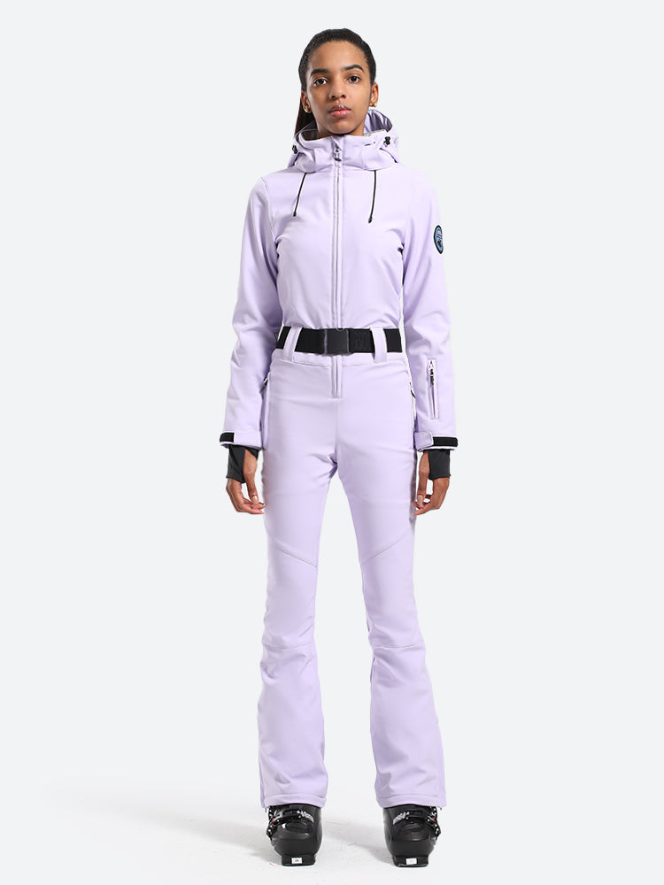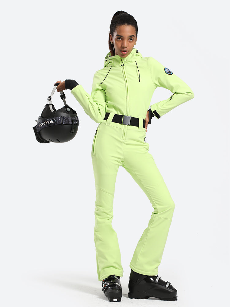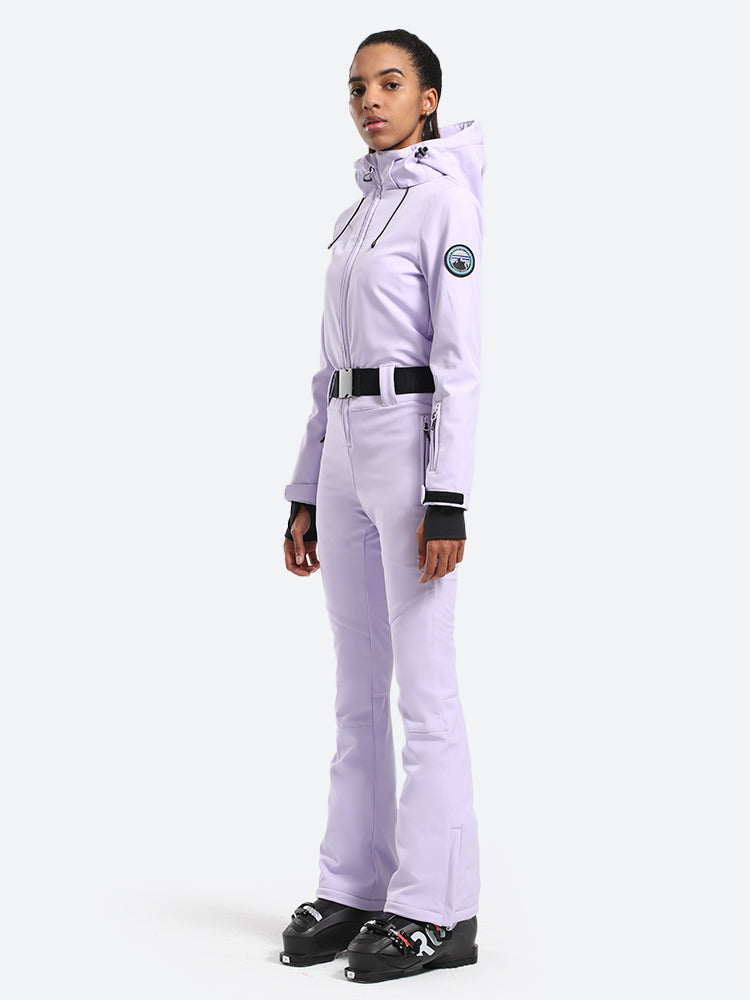 The GSou Snow one-piece ski suit delivers unparalleled coziness and ease of movement, enhanced by practical features like a removable hood, two thigh pockets, a pass pocket on the cuff, and an adjustable waistband.