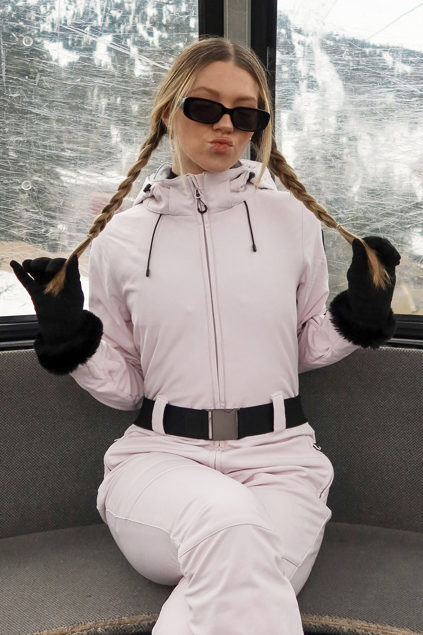 Combinaisons de ski une pièce rose clair pour femmes avec capuche amovible