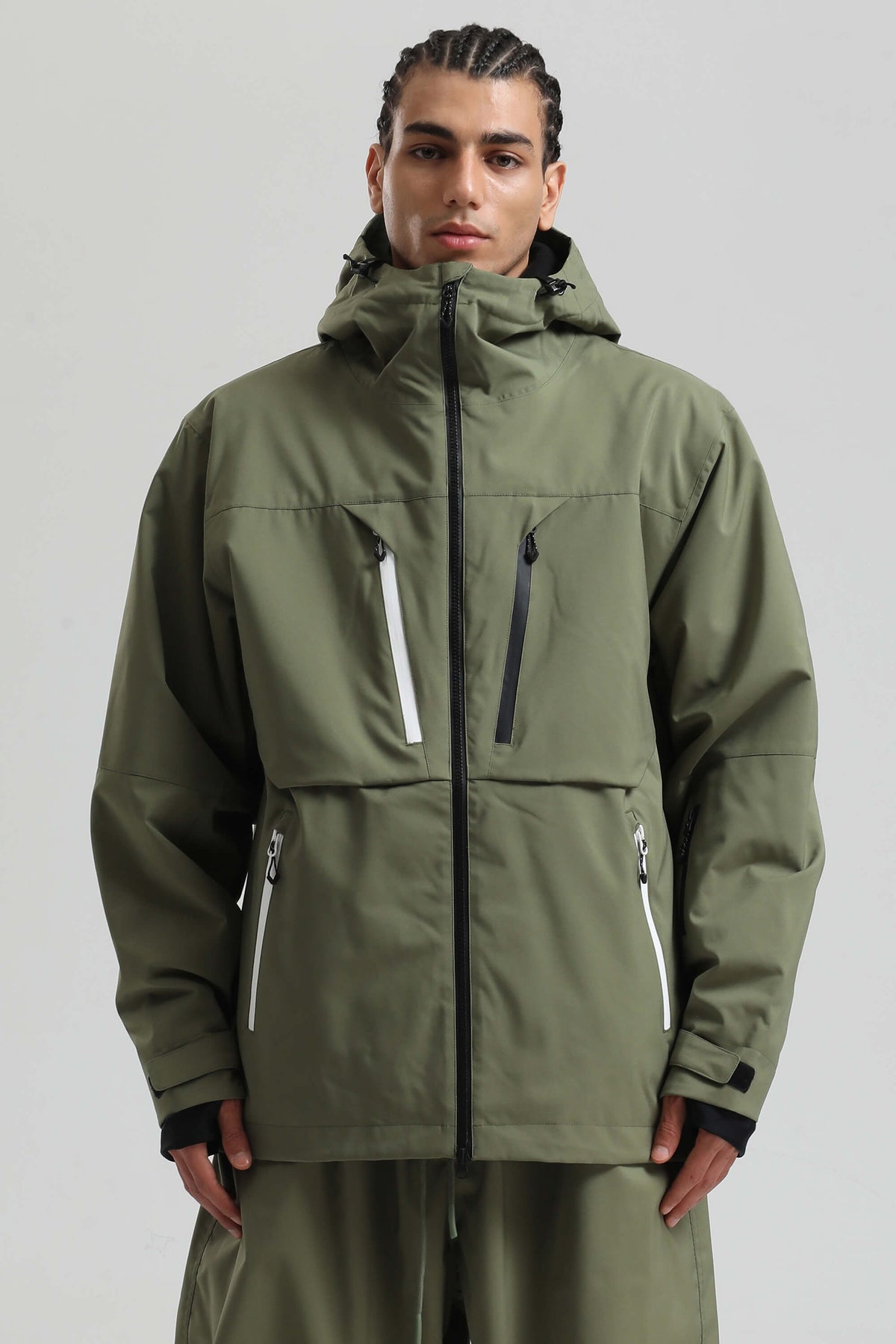 Heren kaki contrasterende ritssluiting volledig afgedichte waterdichte geïsoleerde sneeuwjas