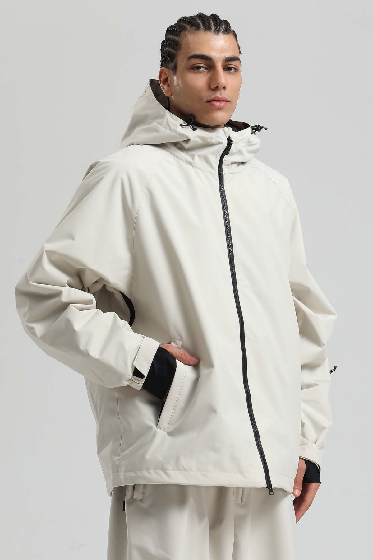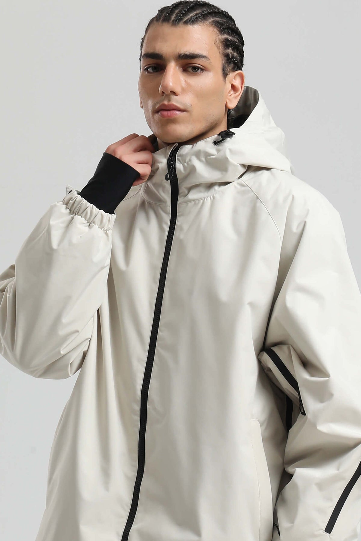 Off White minimalistische waterdichte geïsoleerde sneeuwjas voor heren met dubbele ventilatie
