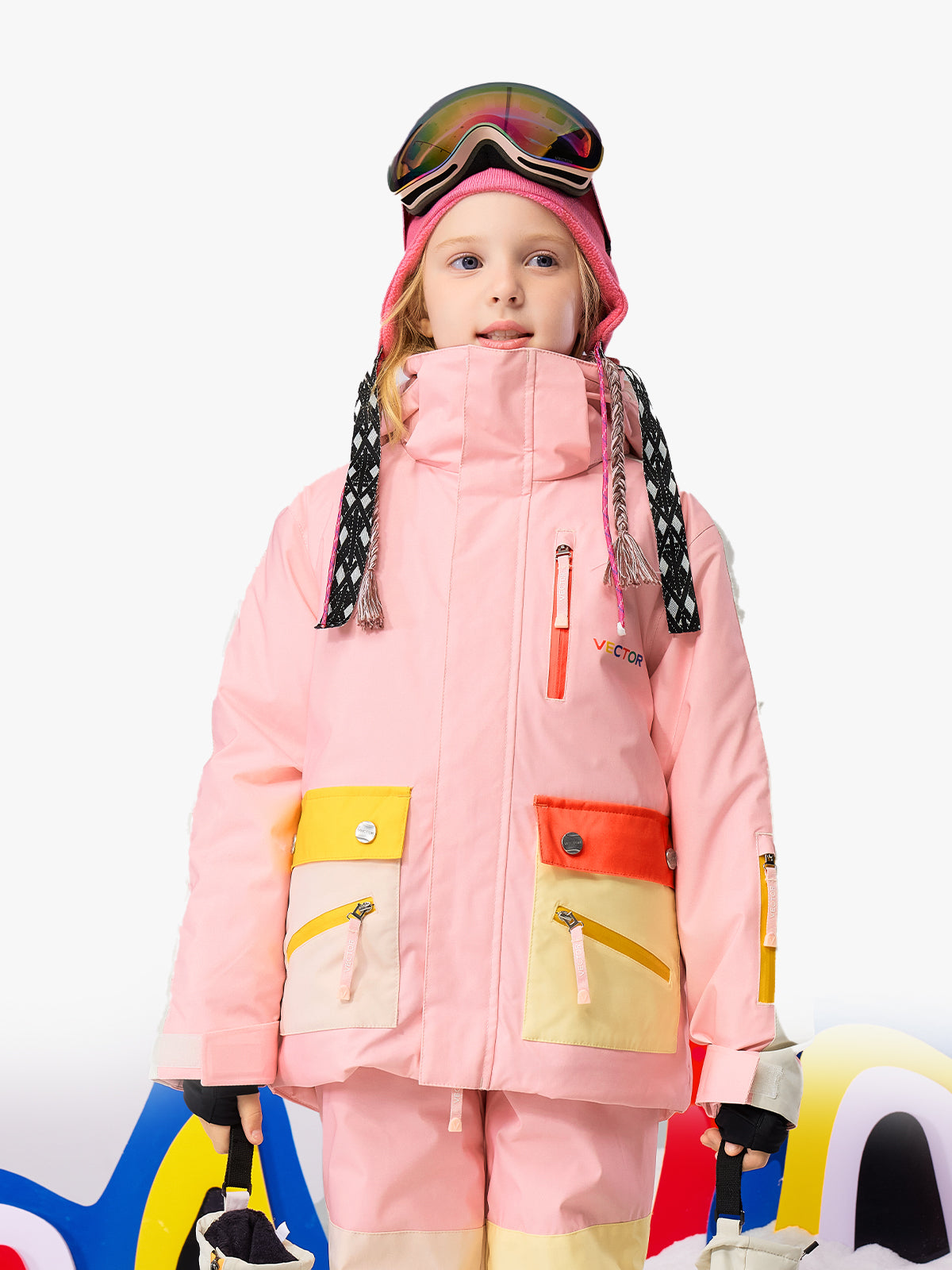 Colorcube Smartgrow 2L Anorak Jacket is a high-warmth, grow-with-me ski jacket designed for cold climates. It features scientific zoned insulation with 180g/m² in the body, 120g/m² in the sleeves, and 80g/m² SORONA® bio-based thermal pile in the hood, plus a thickened fleece back lining for dual warmth. The Smartgrow™ adjustment system extends sleeve and hem length as your child grows. Inspired by colorful building blocks, the design transforms kids into "little architects" creating their own snowy wonderland. With 20K waterproofing/8K breathability and C0 PFC-free DWR coating that sheds snow, plus pre-shaped elbows and knees for easy movement over protective gear, it ensures unrestricted fun.