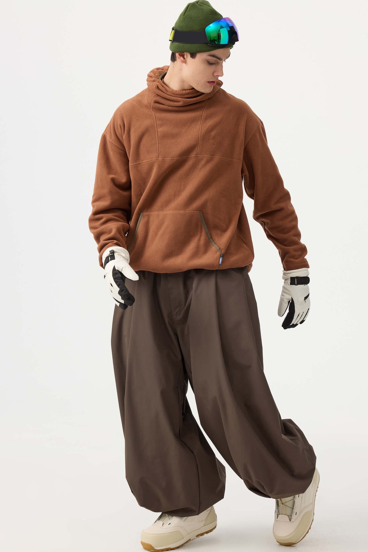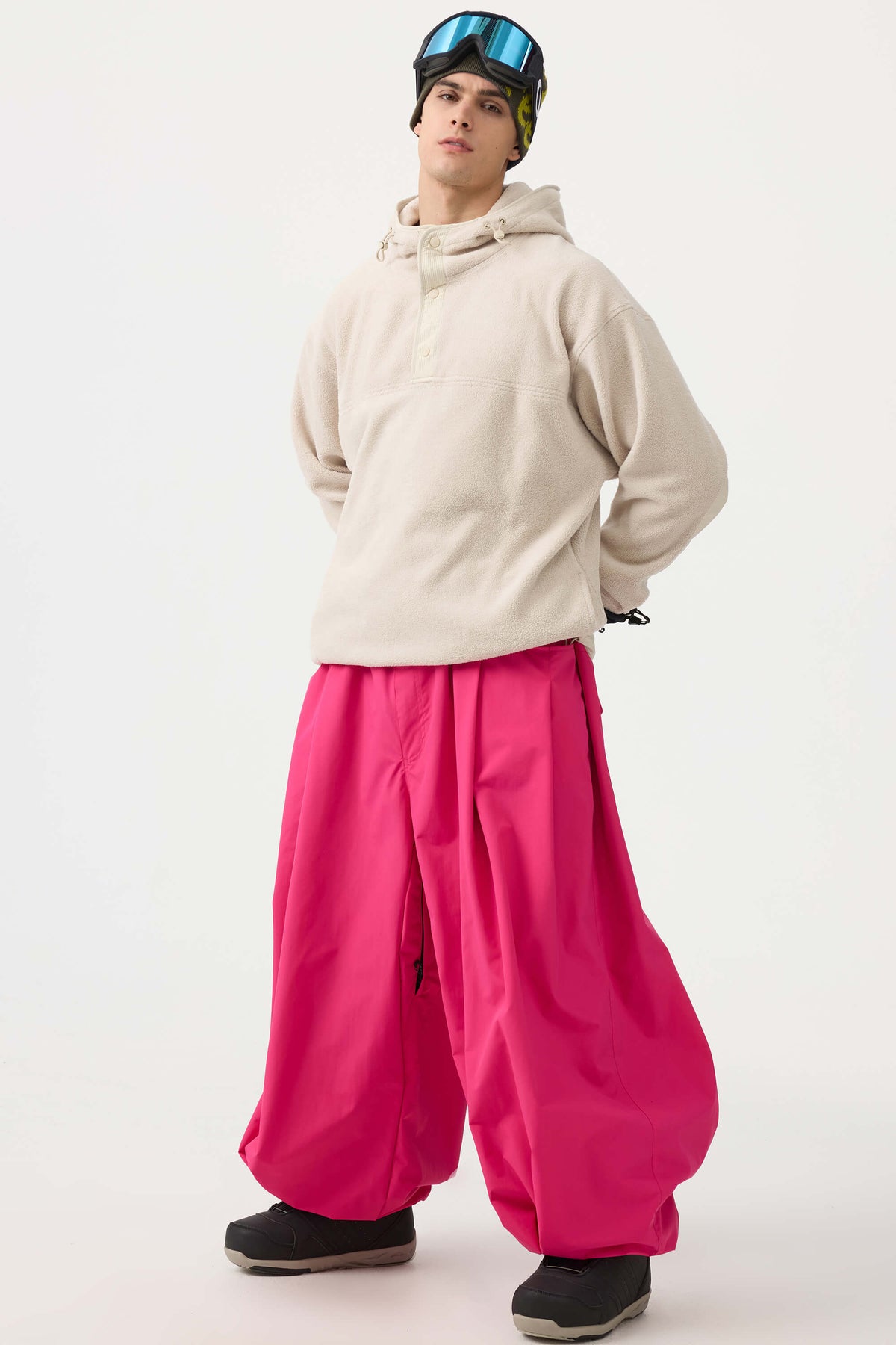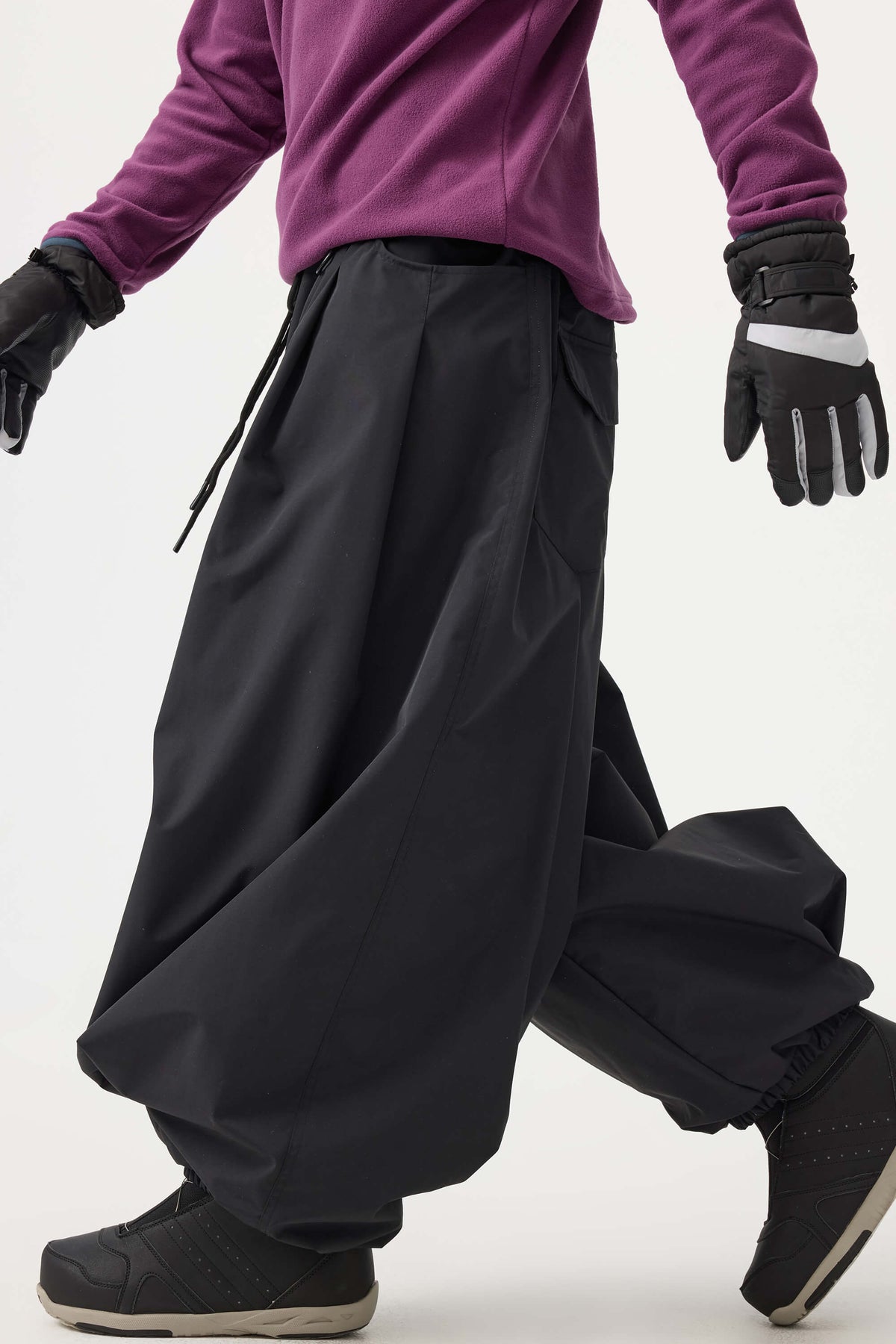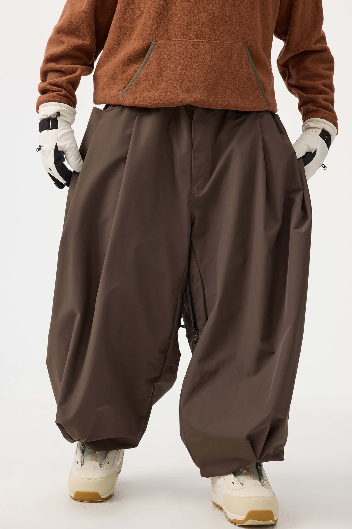 Crafted with advanced nylon weaving and a water-resistant coating, these pants offer superior abrasion resistance and long-lasting durability. With a next-gen silicone anti-slip powder skirt and a drawstring elasticated waistband, they keep you warm, snug, and stylish while offering a comfortable, baggy fit.