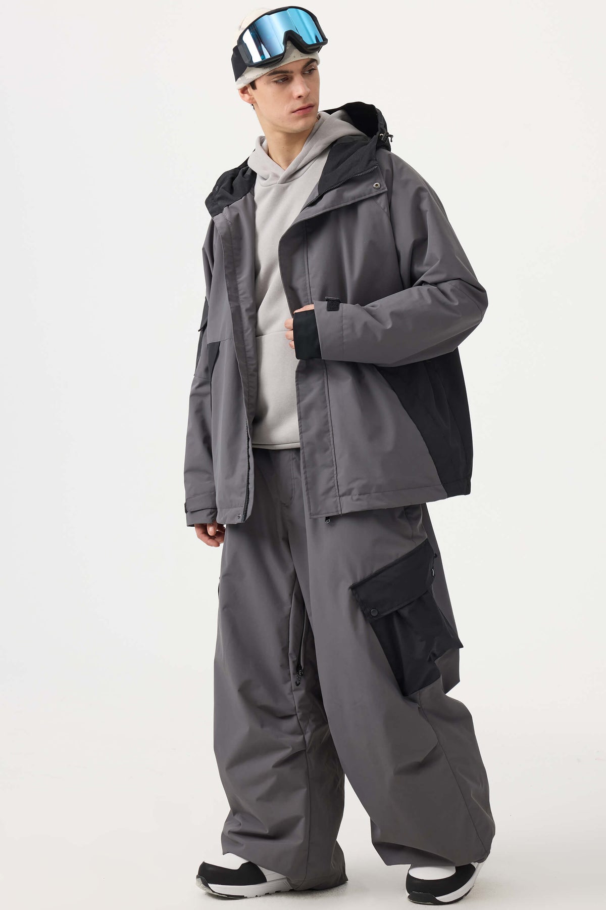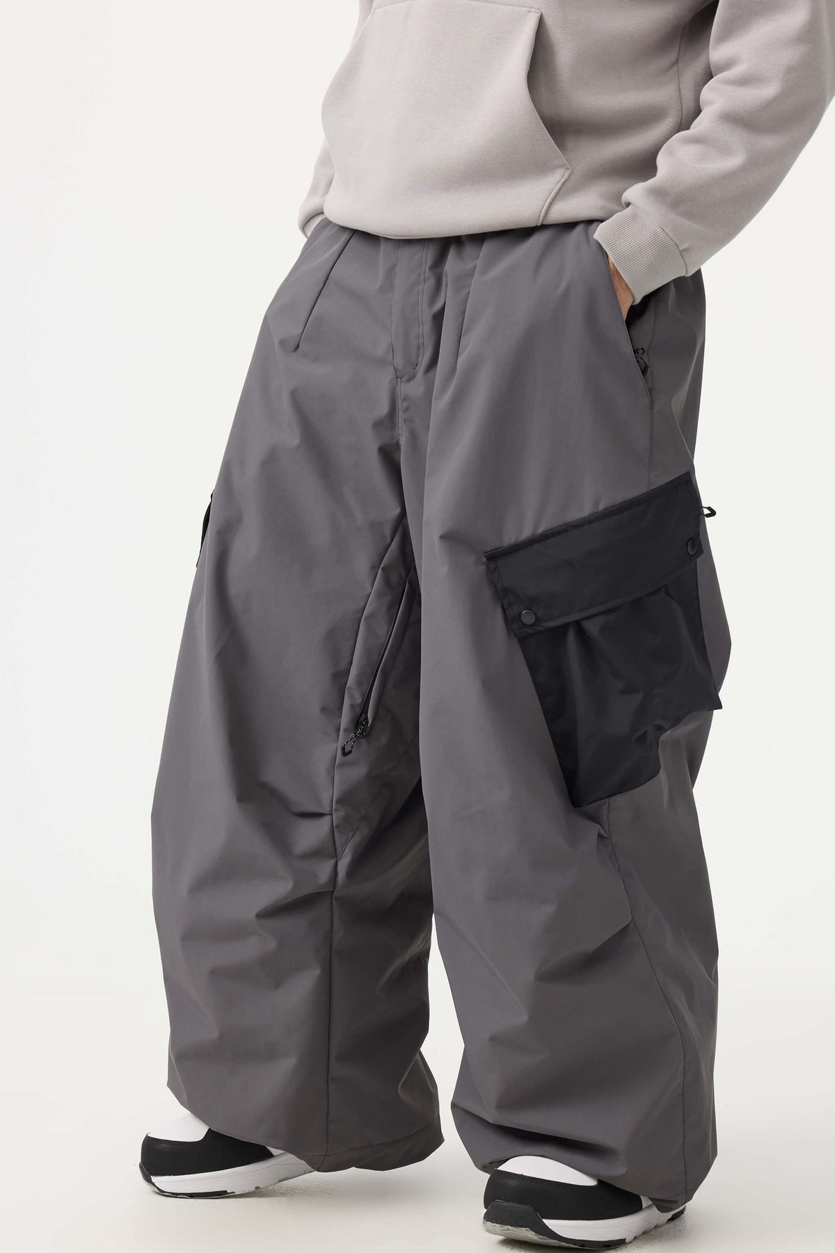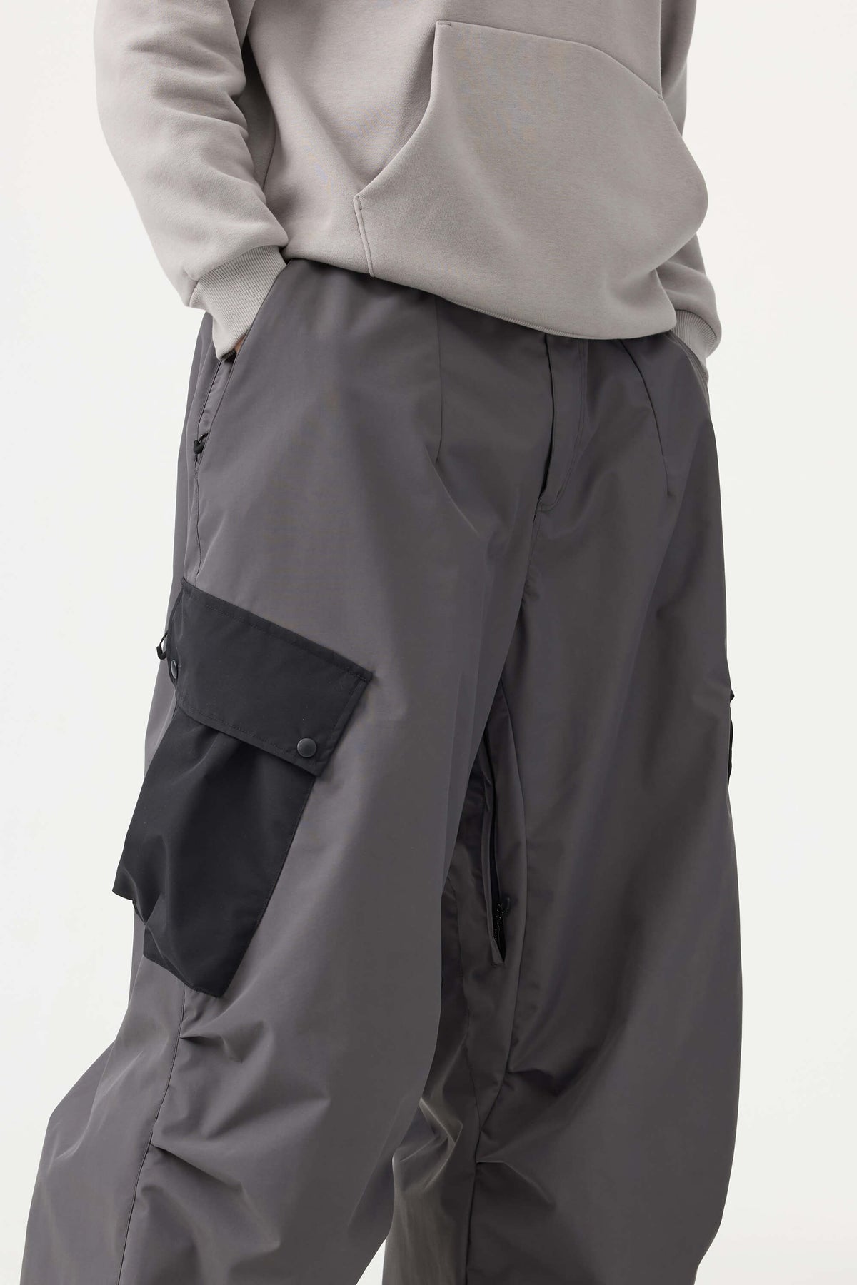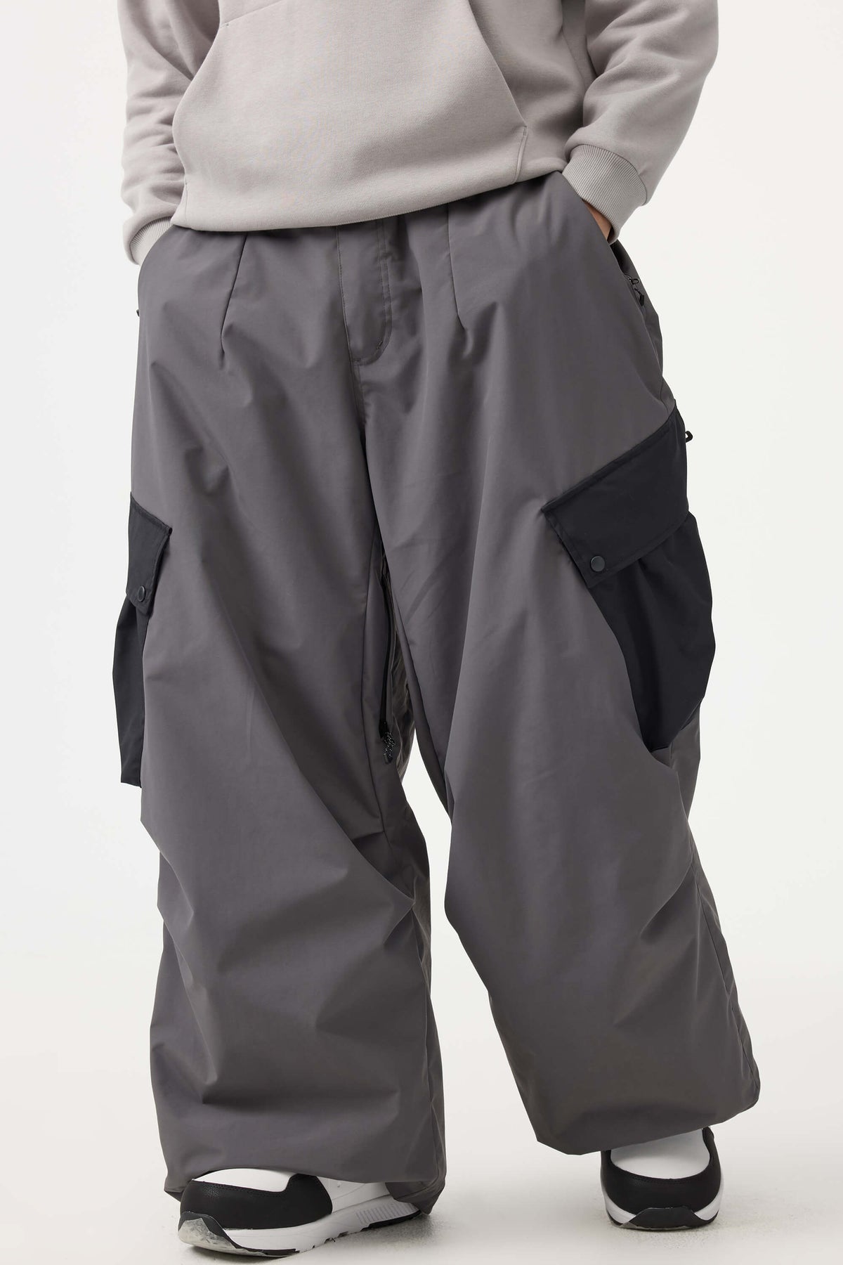 Donkergrijze baggy snowpants voor heren met kleurblokken en cargozakken