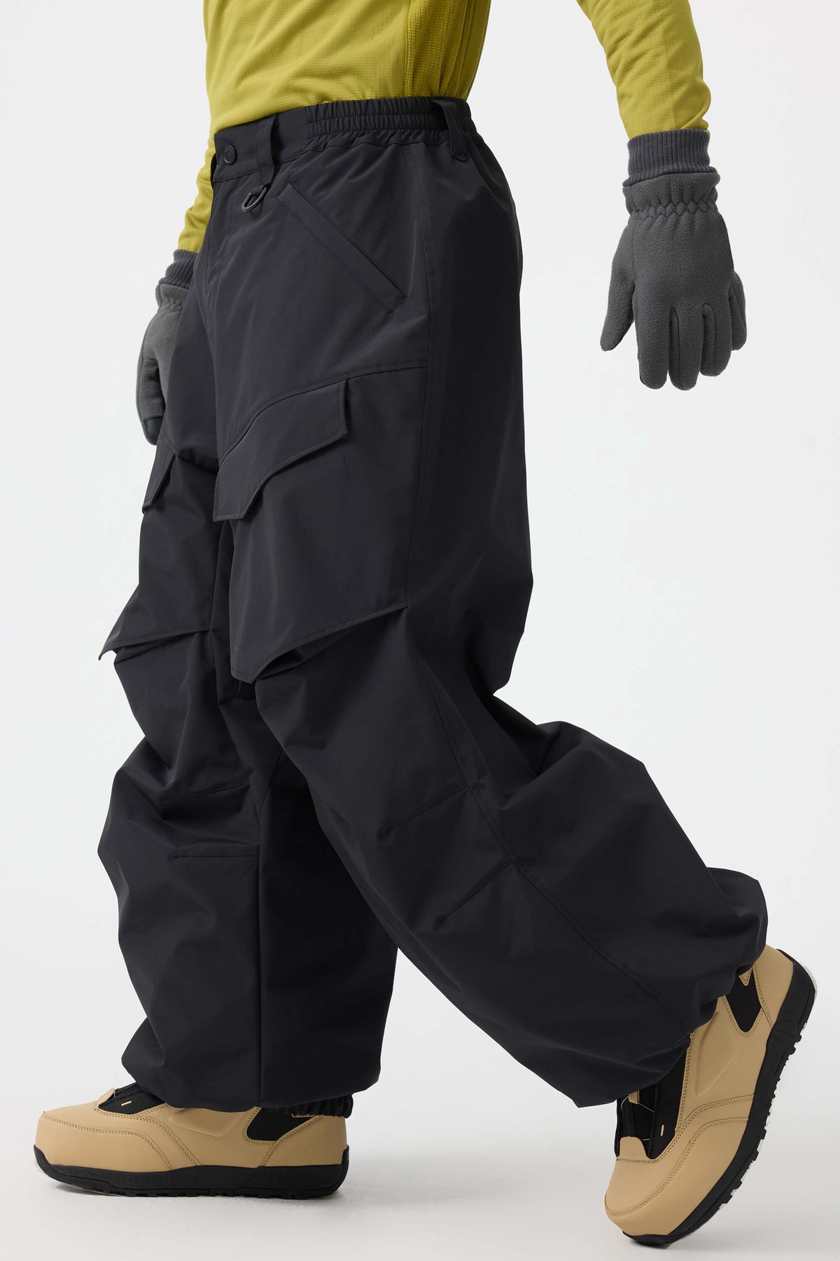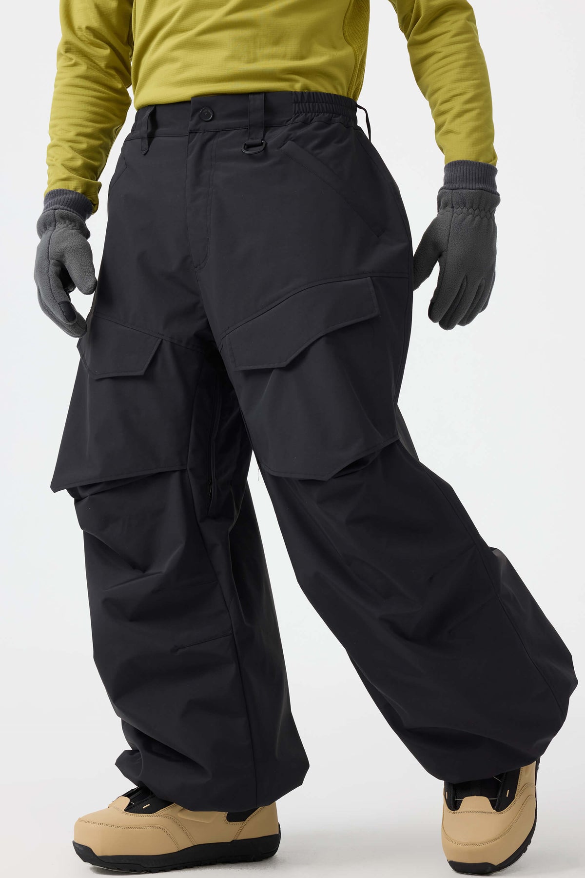 Crafted with advanced nylon weaving and a water-resistant coating, these pants offer superior abrasion resistance and long-lasting durability. With a next-gen silicone anti-slip powder skirt, they ensure a snug, windproof seal that keeps you warm while rocking a baggy look. Four large pockets and key hook provide added practicality.