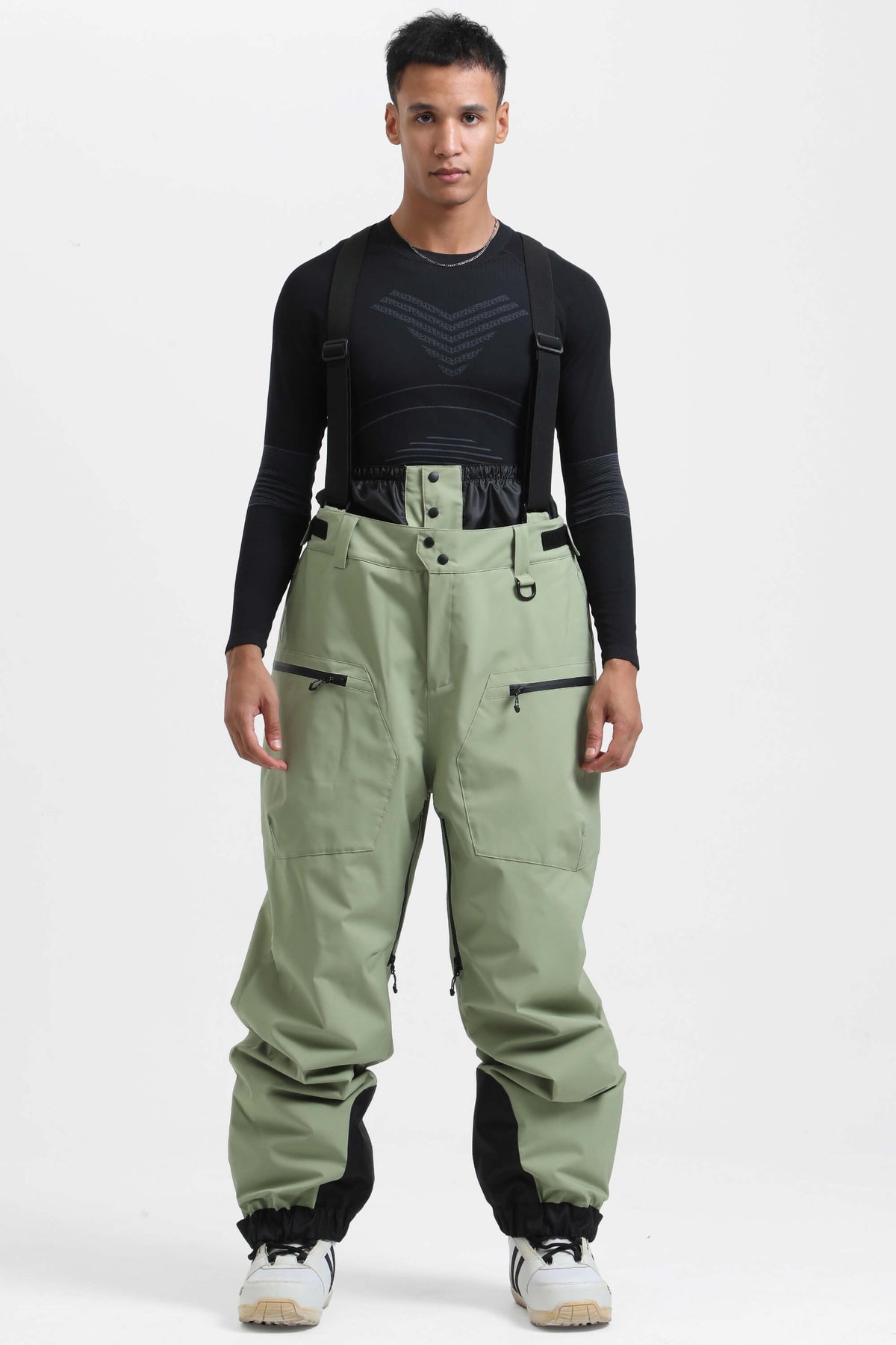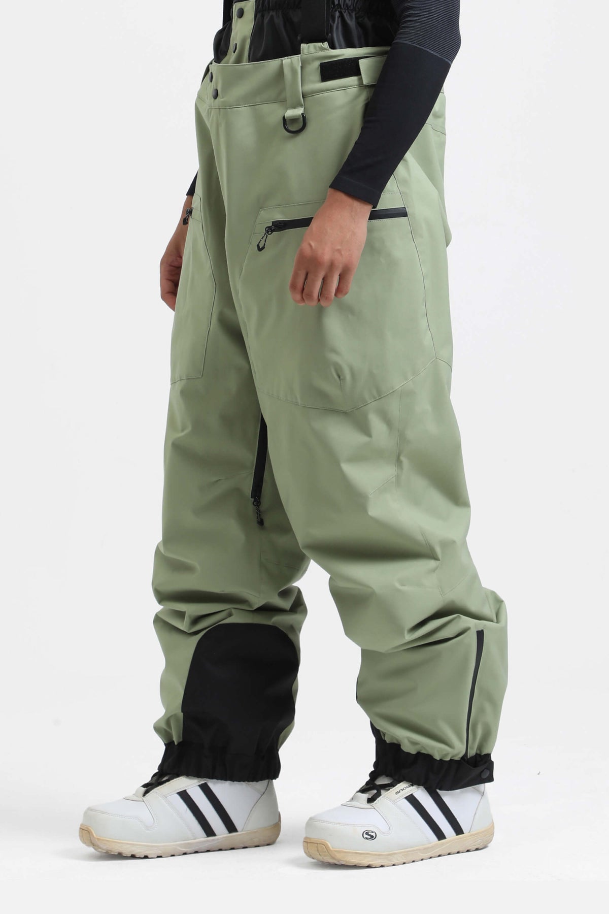 Heren kaki geïsoleerde baggy sneeuwbroek met afneembare bretels