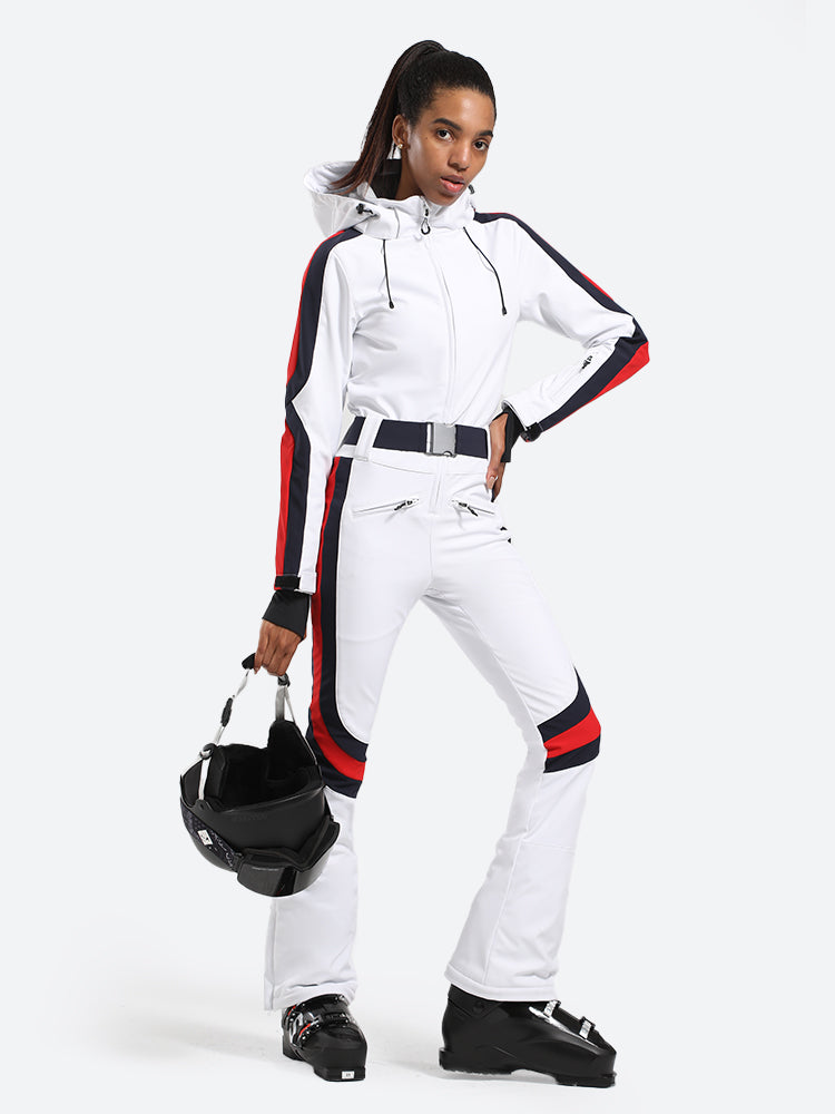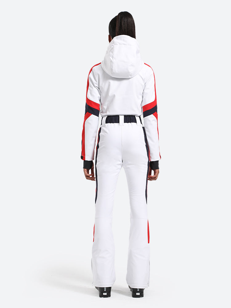 Wit stijlvol atletisch eendelig skikostuum voor dames