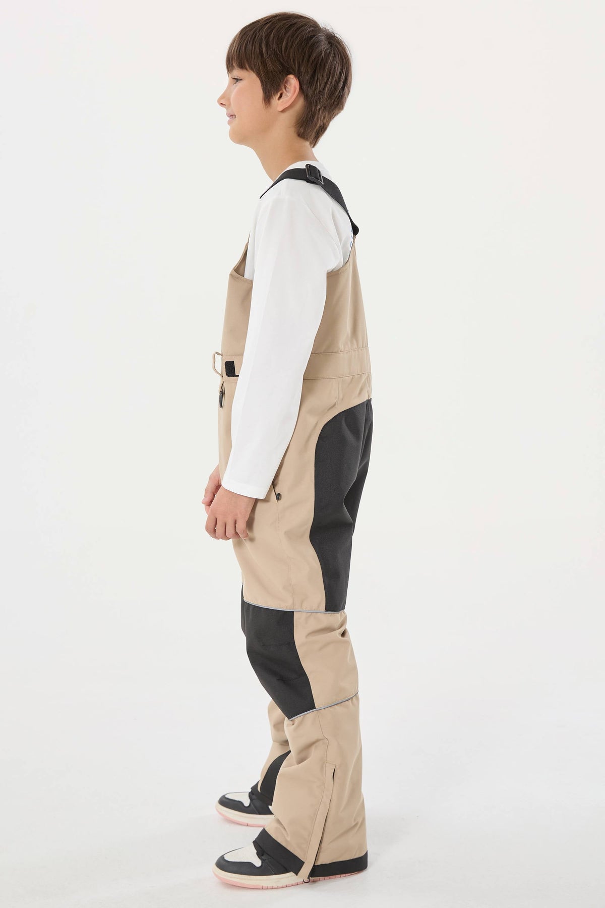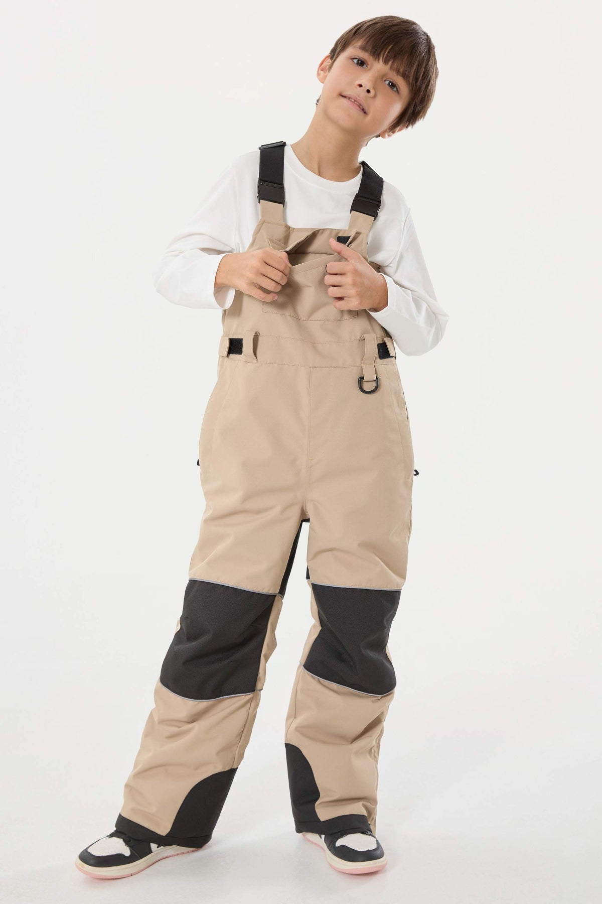 Kids’ snow bibs with adjustable straps and hook-and-loop side tabs for a comfy fit. Reinforced seat and knees, reflective strips, anti-slip gaiters, and side calf zipper hems keep kids safe and ready for snowy fun.
